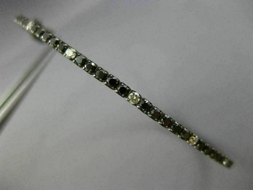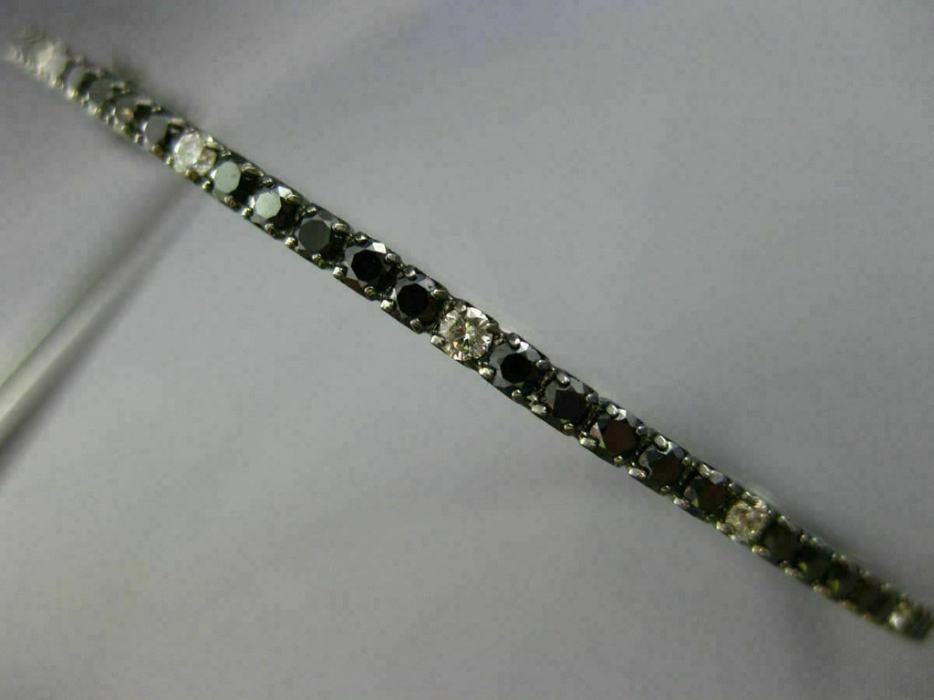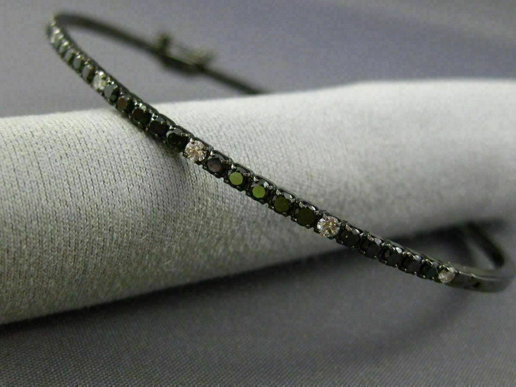 ESTATE 14KT BLACK GOLD BANGLE BRACELET. 3D CLASSIC SEMI ETERNITY DESIGN. WHITE DIAMOND ARE F/G COLOR, VSSI CLARITY. WHITE & BLACK DIAMONDS ARE 1.26 CARATS. MEASURES 2mm X 57.5mm X 64mm. FITS 6.50-7" INCH WRIST. WRITTEN APPRAISAL AVAILABLE. COMES IN A PRESENTABLE GIFT BOX.