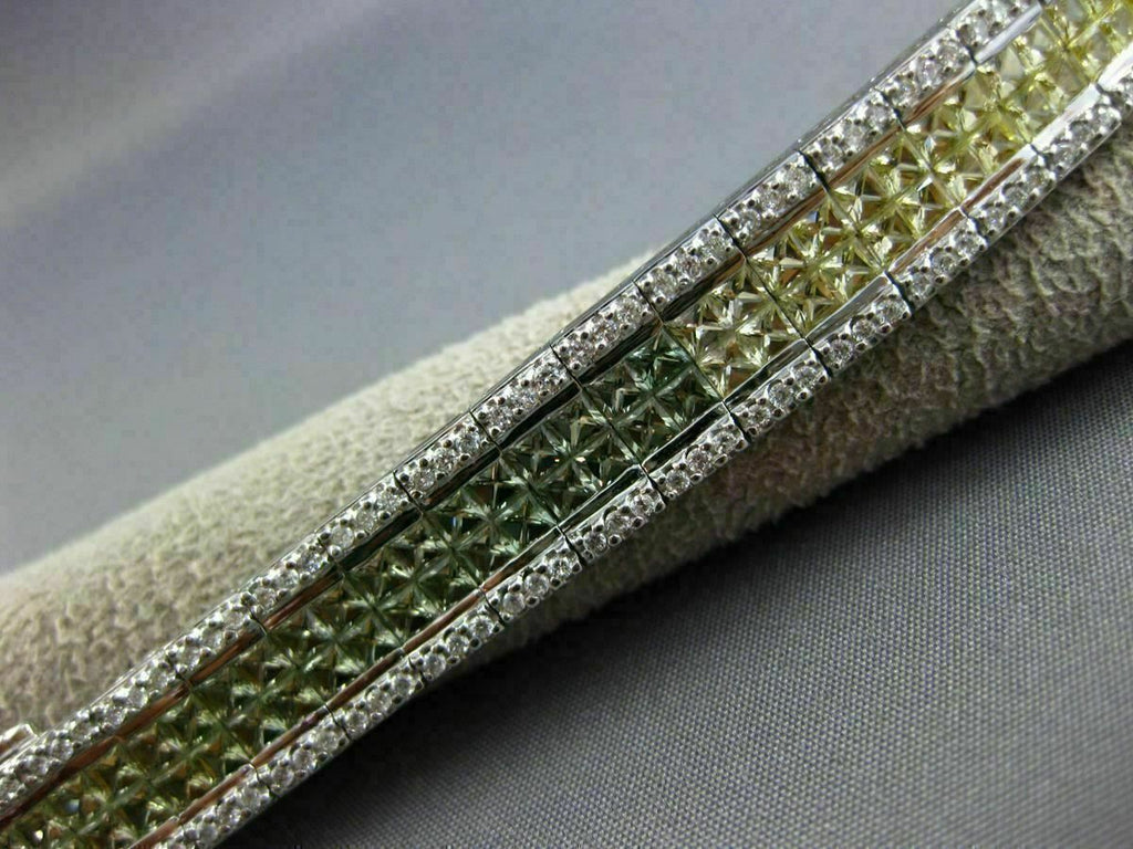 ESTATE 15.07CT DIAMOND & MULTI COLOR SAPPHIRE 14KT WHITE GOLD MULTI ROW BRACELET