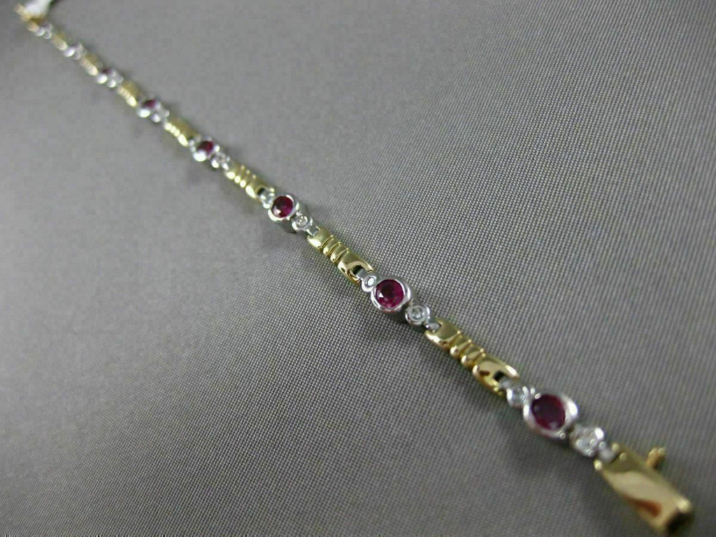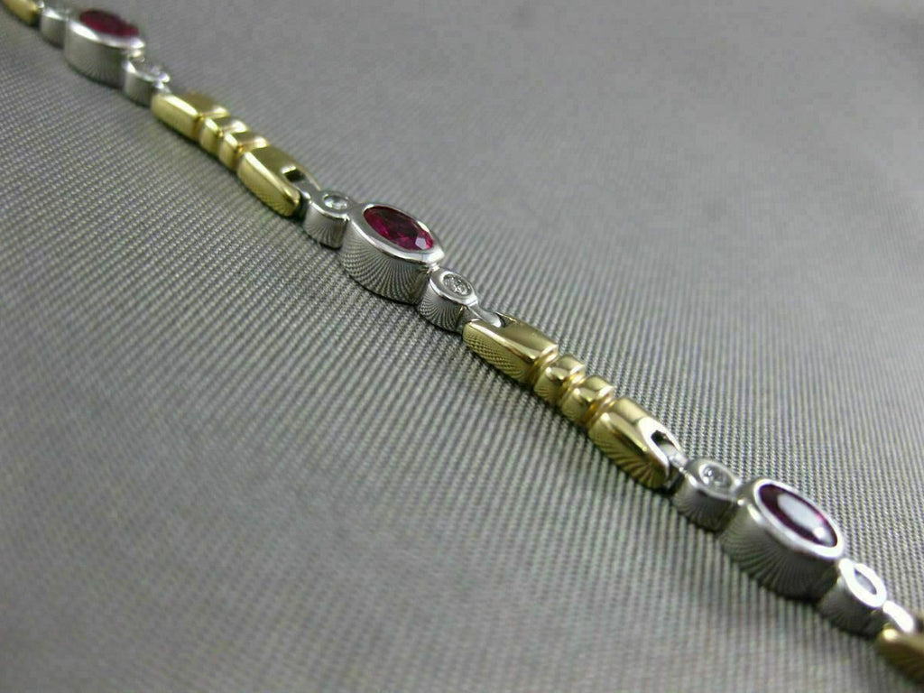 ESTATE 2.17CT DIAMOND & RUBY 14K TWO TONE GOLD BY THE YARD BEZEL TENNIS BRACELET