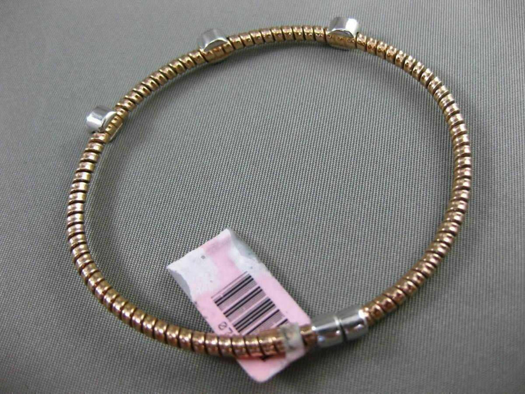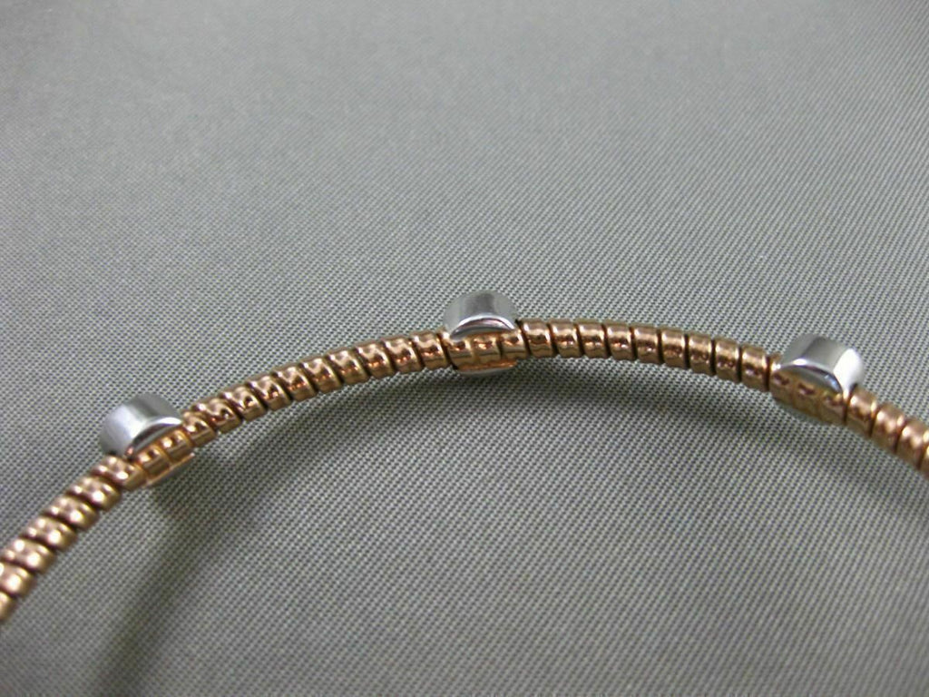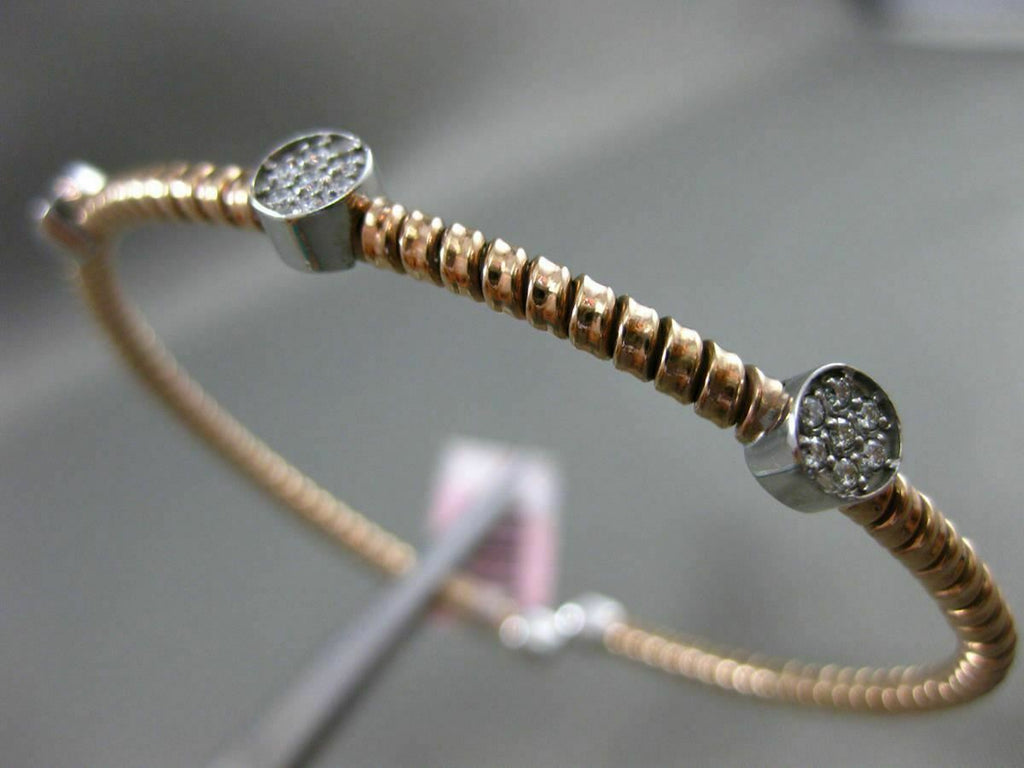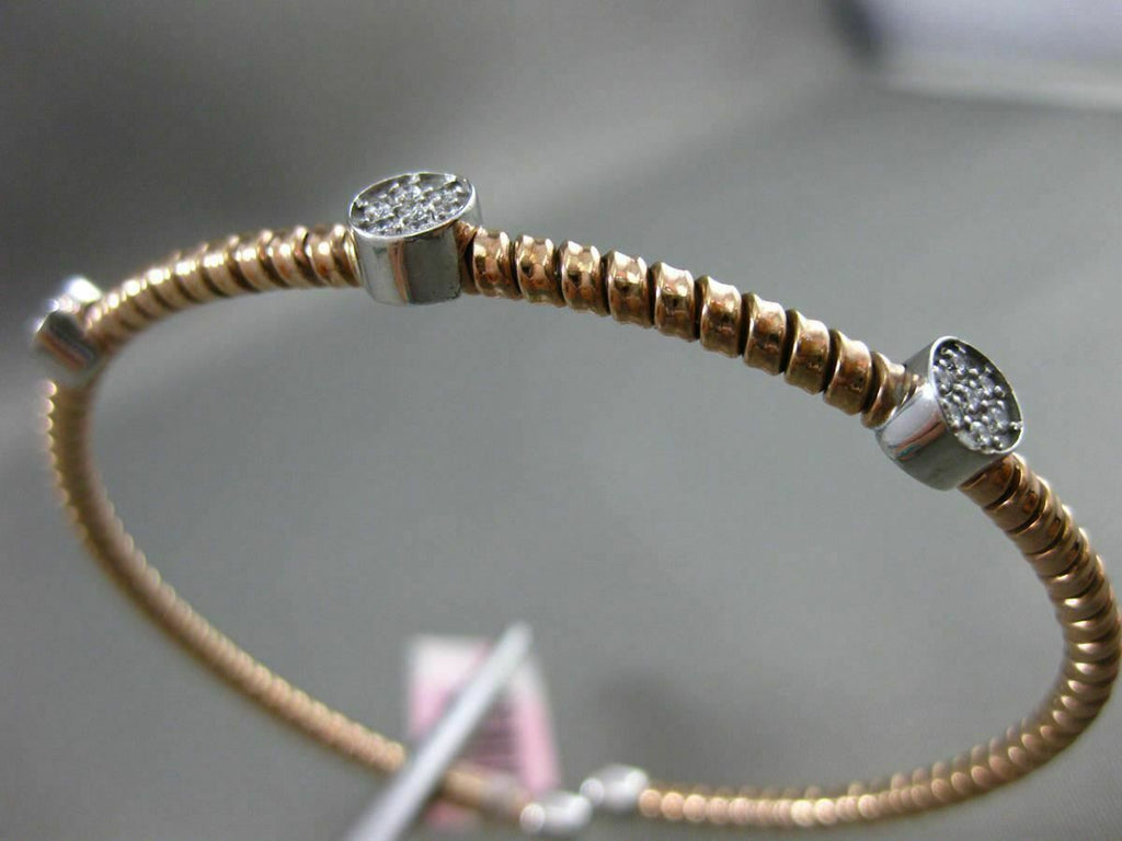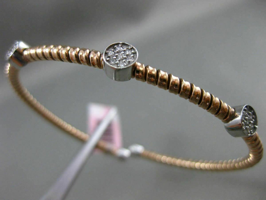 ESTATE 14KT WHITE & ROSE GOLD BANGLE BRACELET. 3D ROPE PAST PRESENT FUTURE FLEXIBLE DESIGN. DIAMONDS ARE F/G COLOR, VSSI CLARITY .21 CARATS. MEASURES 5mm X 55mm X 65mm. FITS 7" INCH WRIST. WRITTEN APPRAISAL AVAILABLE. COMES IN A PRESENTABLE GIFT BOX.
