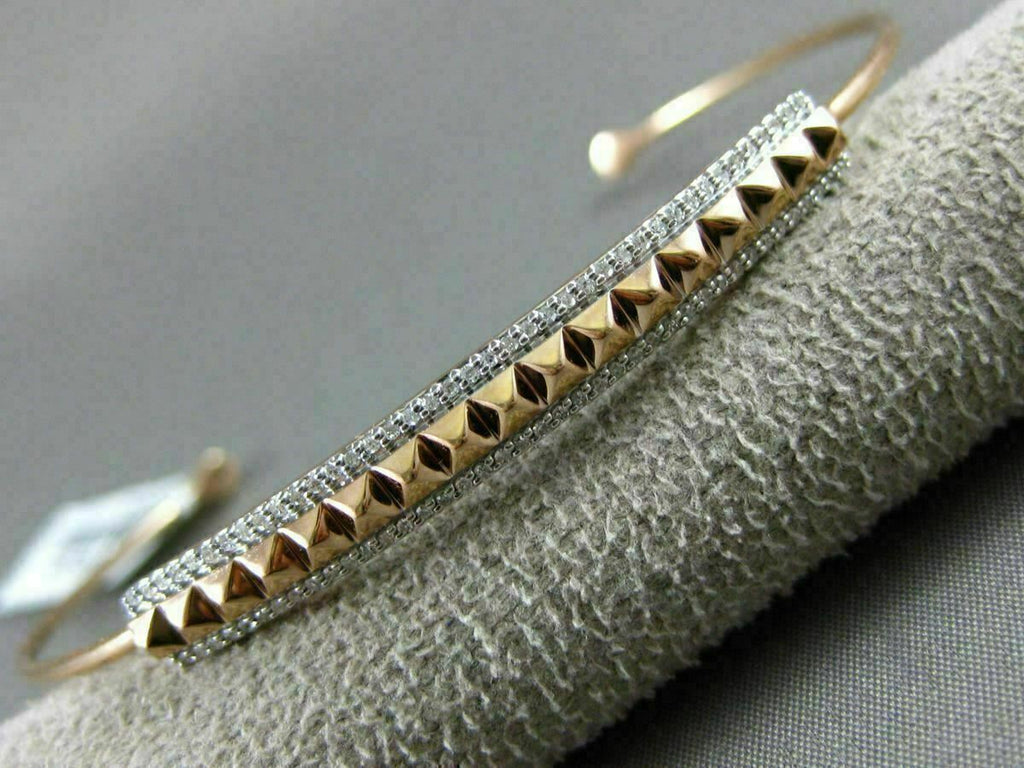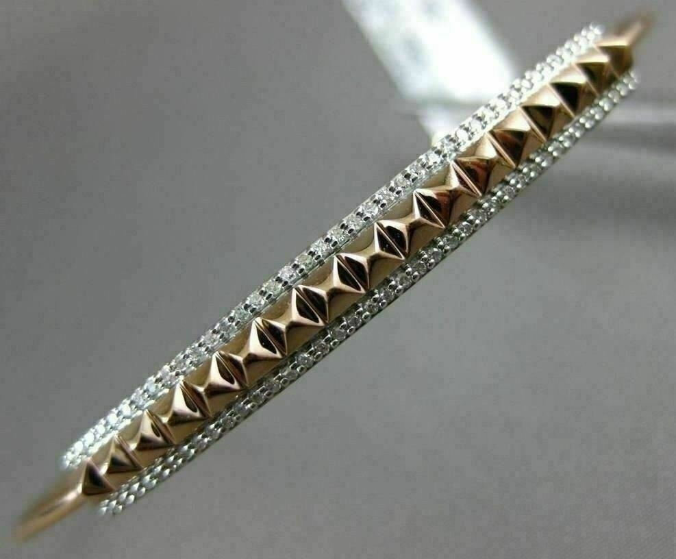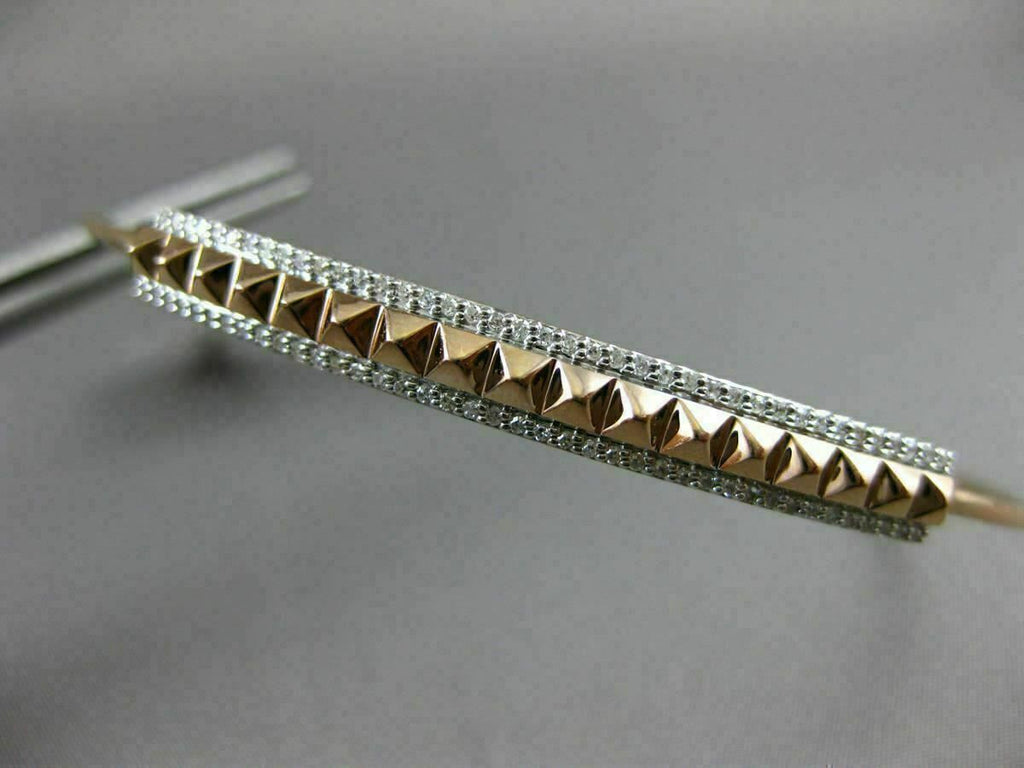 ESTATE .26CT DIAMOND 14KT WHITE & ROSE 3D GOLD PYRAMID SPIKE FUN BANGLE BRACELET