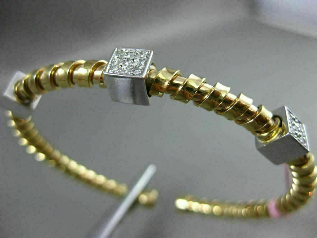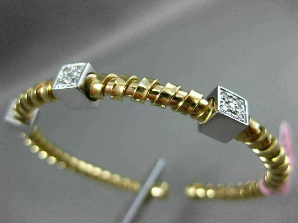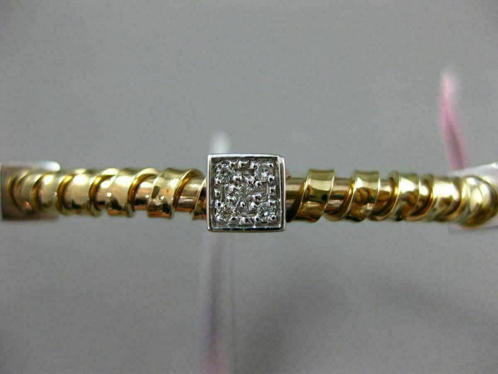 ESTATE .30CT DIAMOND 14KT TWO TONE GOLD 3D SQUARE FLEXIBLE ROPE BANGLE BRACELET