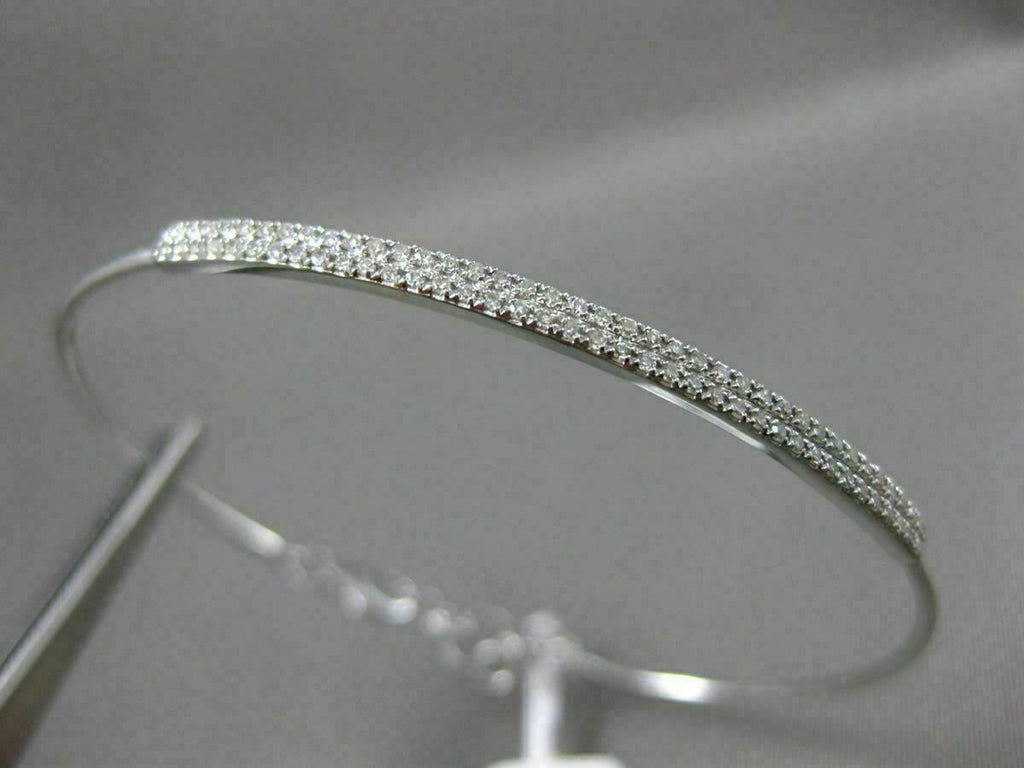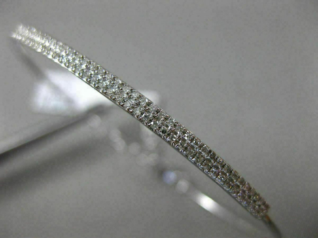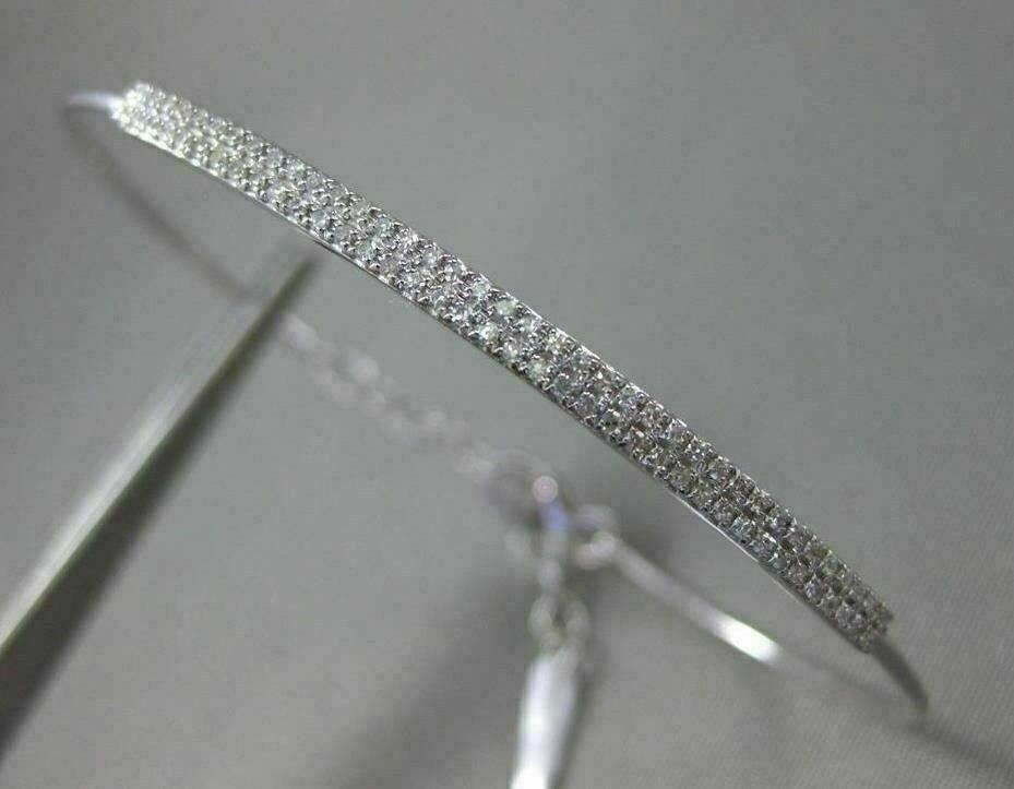 ESTATE .32CT DIAMOND 14K WHITE GOLD 3D CLASSIC PAVE TWO ROW LOVE BANGLE BRACELET