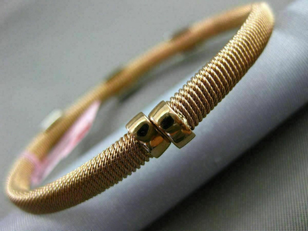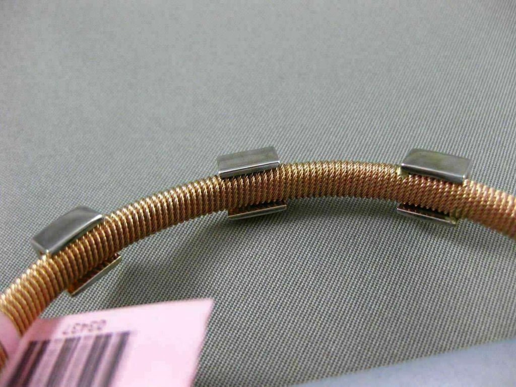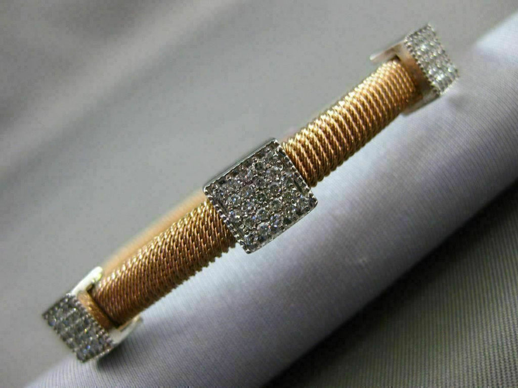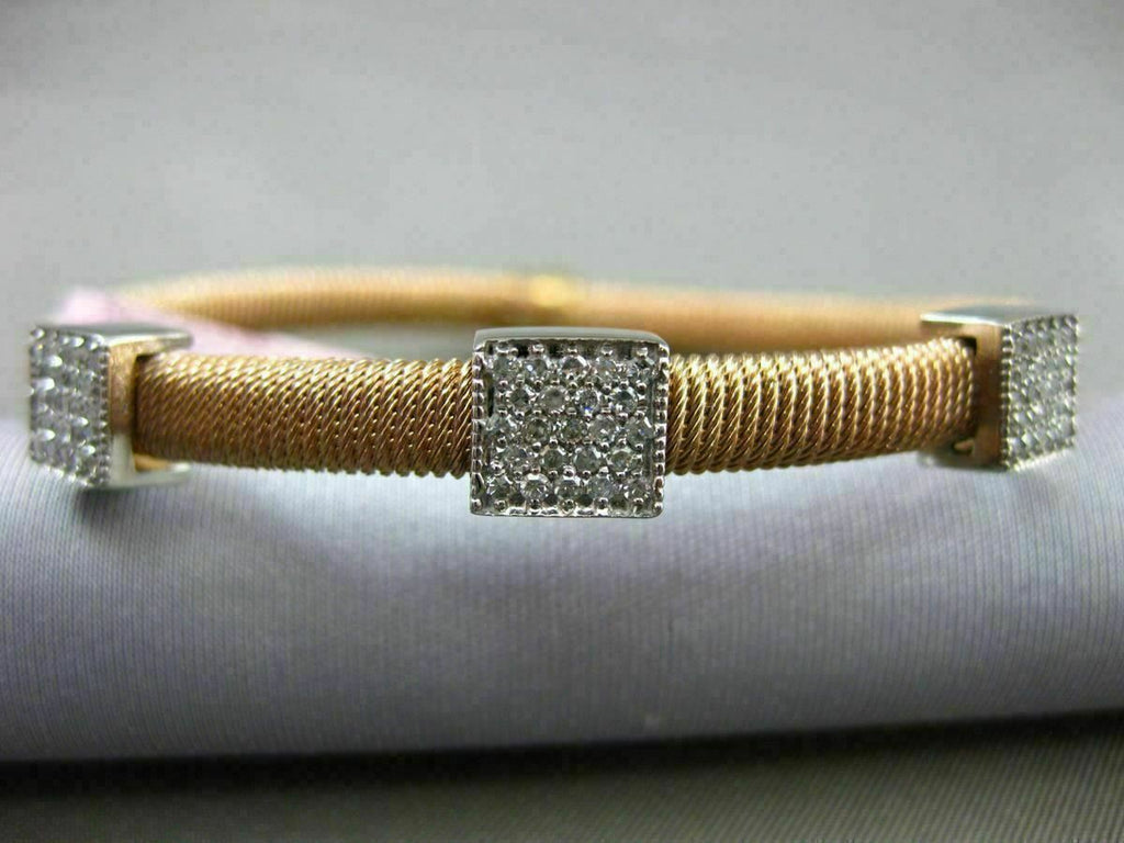 ESTATE 14KT WHITE & ROSE GOLD BANGLE BRACELET. 3D SQUARE MESH FLEXIBLE DESIGN. DIAMONDS ARE F/G COLOR, VSSI CLARITY .75 CARATS. MEASURES 7mm X 58.5mm X 64mm. FITS 7" INCH WRIST. MADE IN ITALY. WRITTEN APPRAISAL AVAILABLE. COMES IN A PRESENTABLE GIFT BOX.
