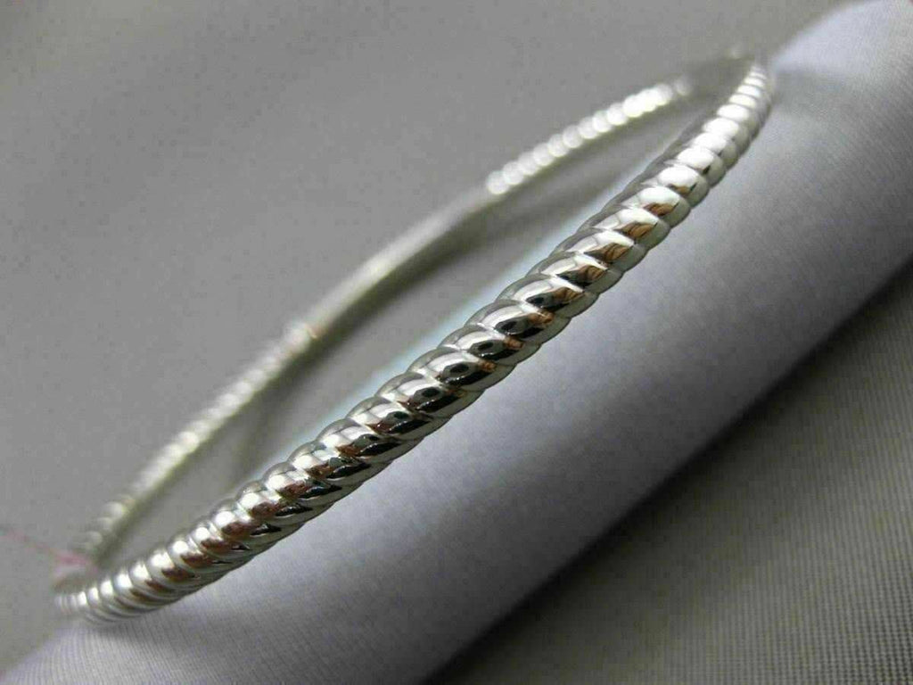 ESTATE 14KT WHITE GOLD BANGLE BRACELET. 3D PAVE ROPE DESIGN. DIAMONDS ARE F/G COLOR, VSSI CLARITY .82 CARATS. MEASURES 4mm X 59mm X 68mm. FITS 7" INCH WRIST. WRITTEN APPRAISAL AVAILABLE. COMES IN A PRESENTABLE GIFT BOX.