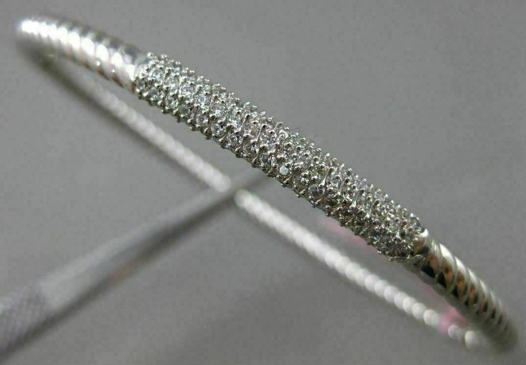 ESTATE .82CT DIAMOND 14KT WHITE GOLD 3D PAVE ROPE DESIGN BANGLE BRACELET