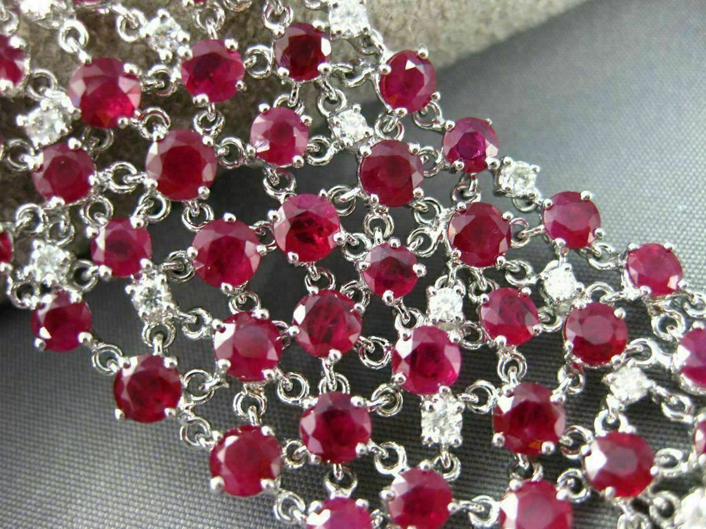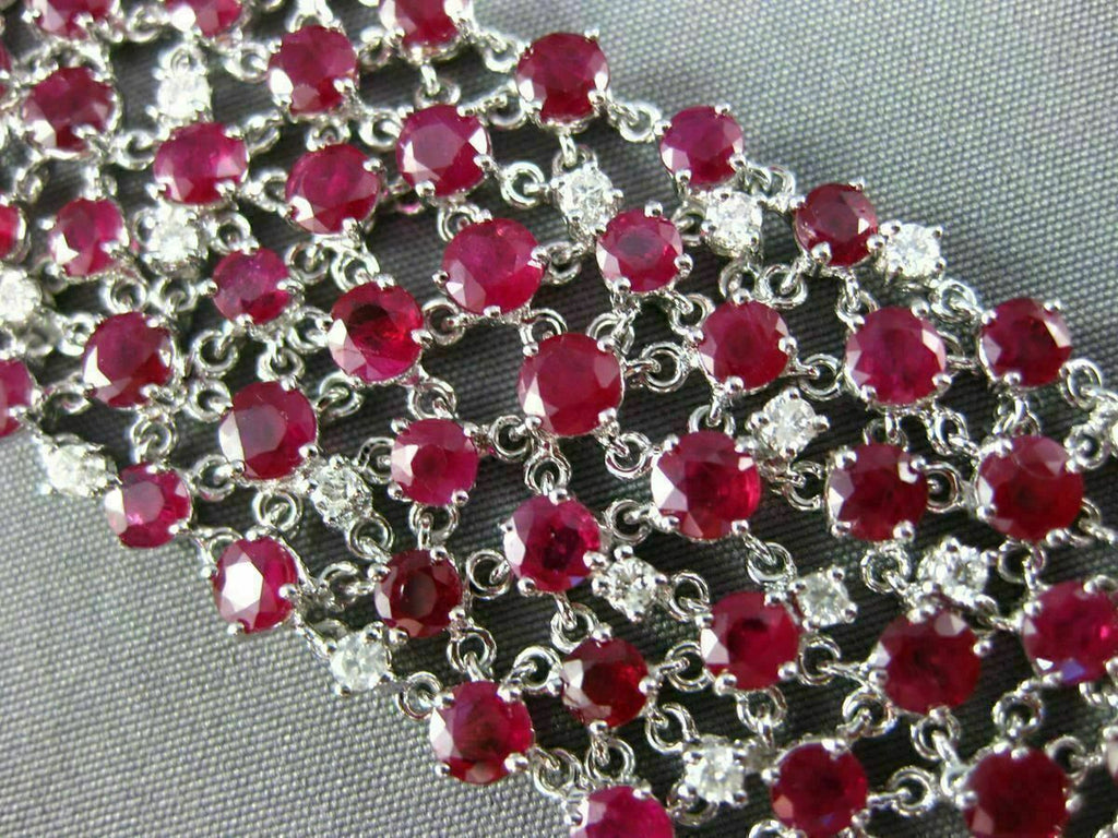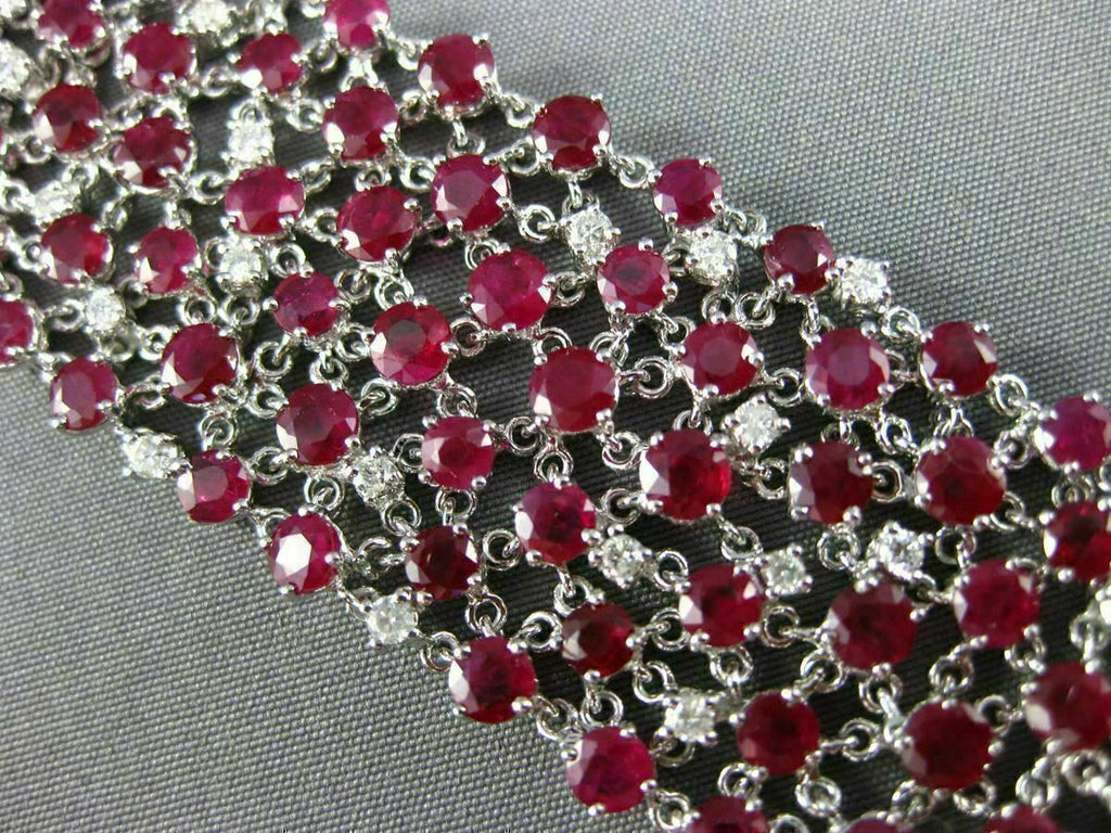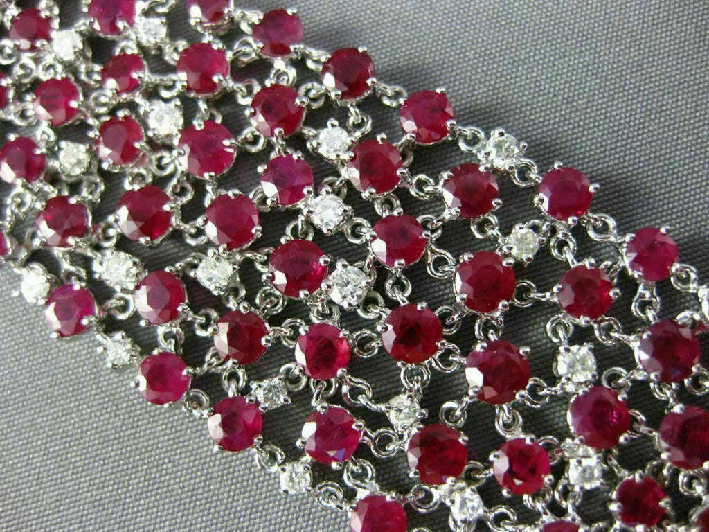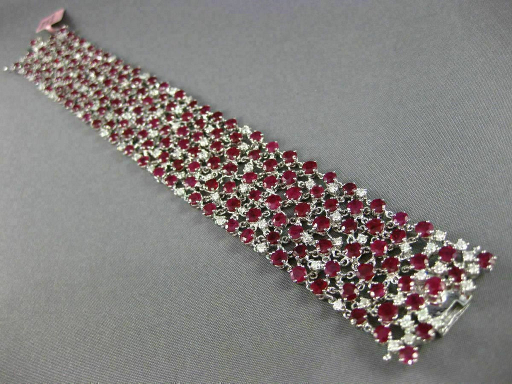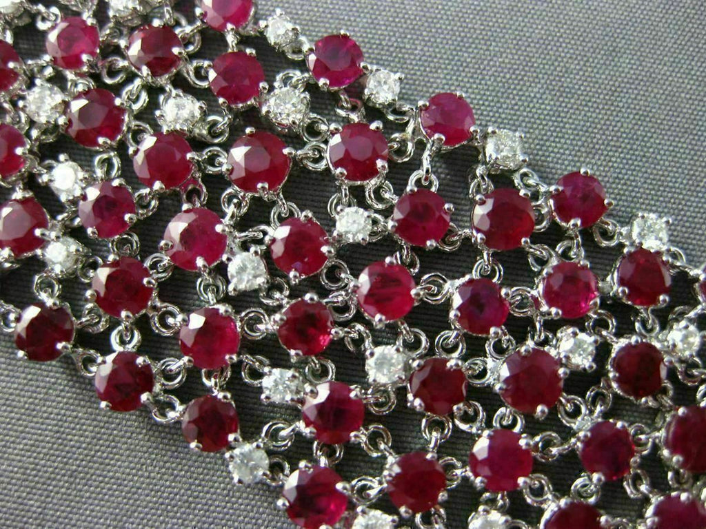 ESTATE EXTRA WIDE 38.47CT DIAMOND RUBY 18KT WHITE GOLD 3D ETOILE TENNIS BRACELET