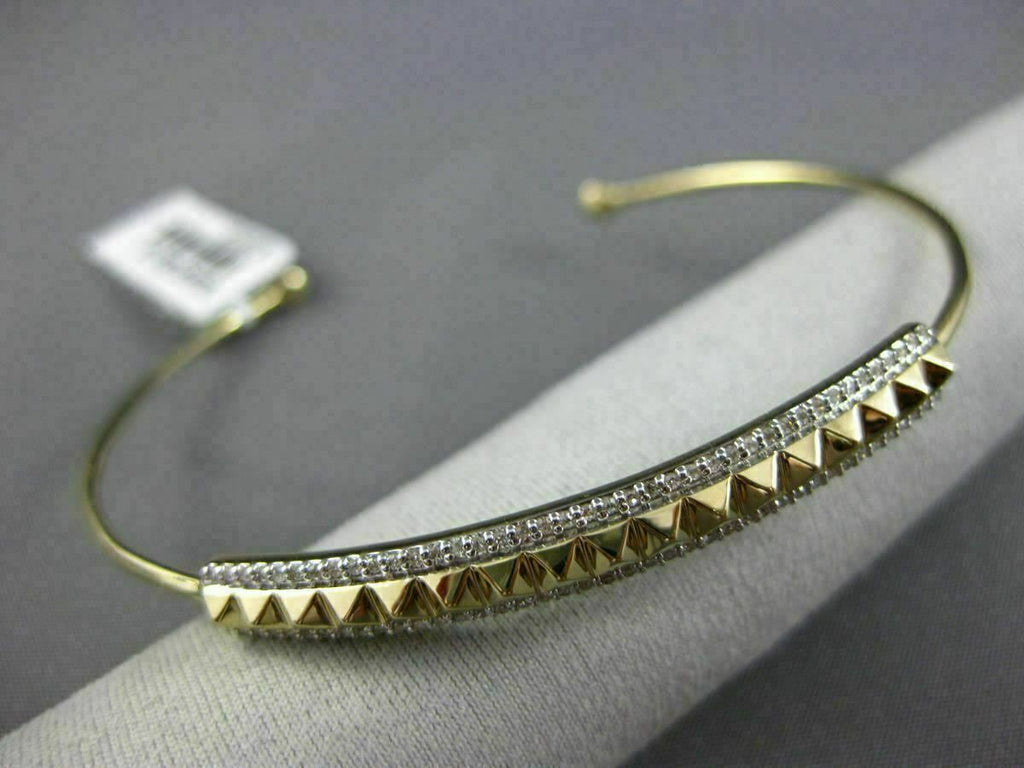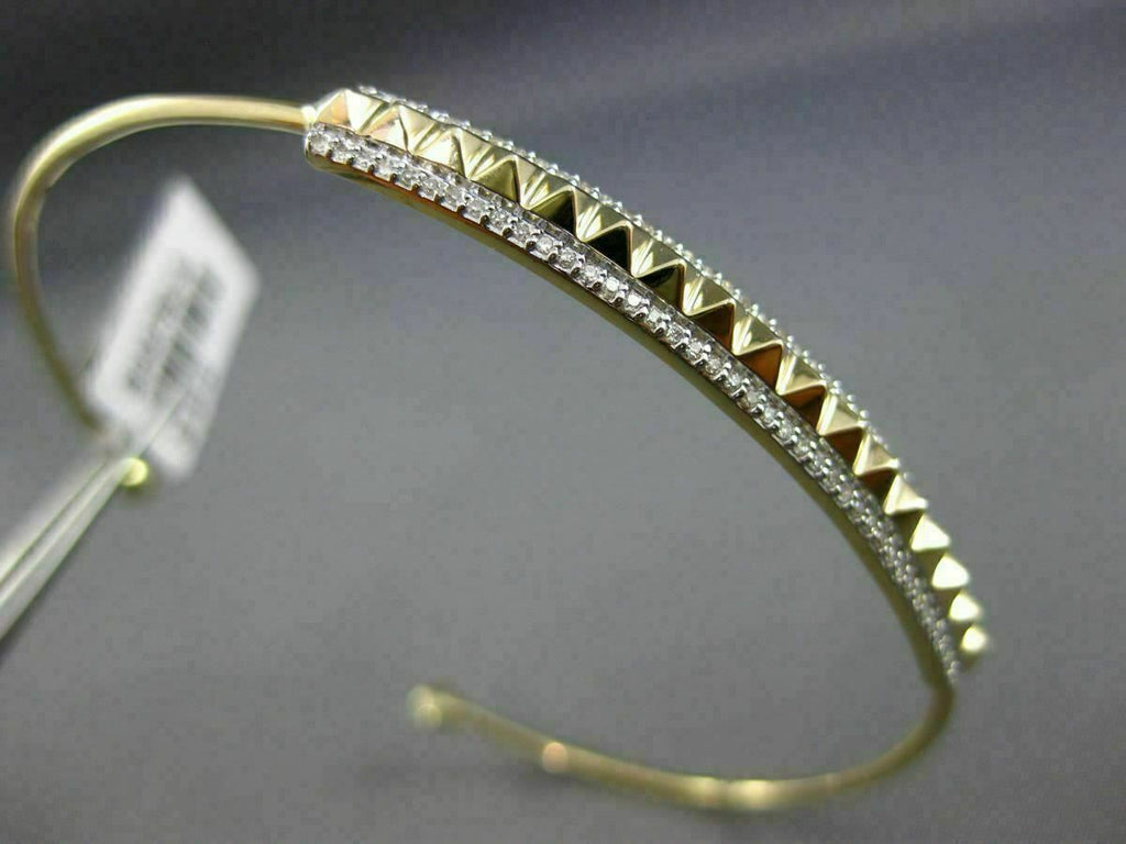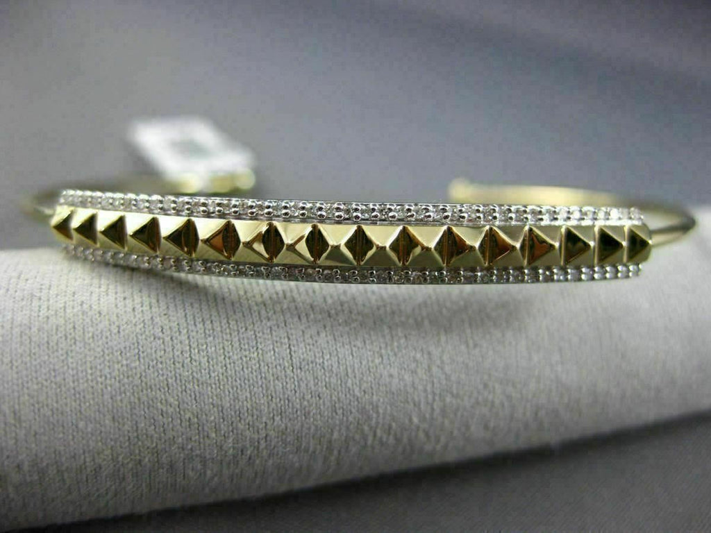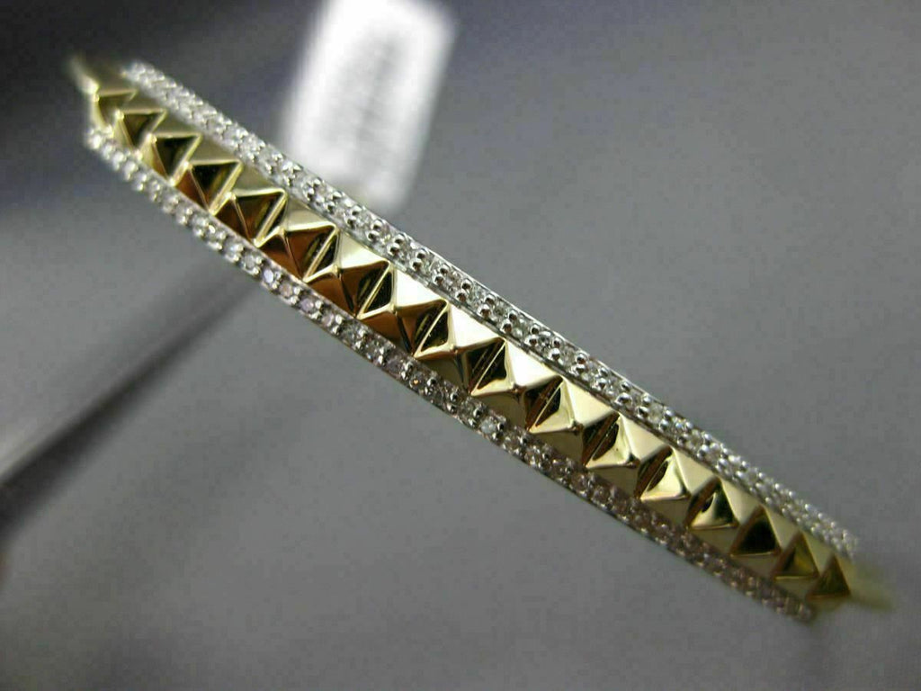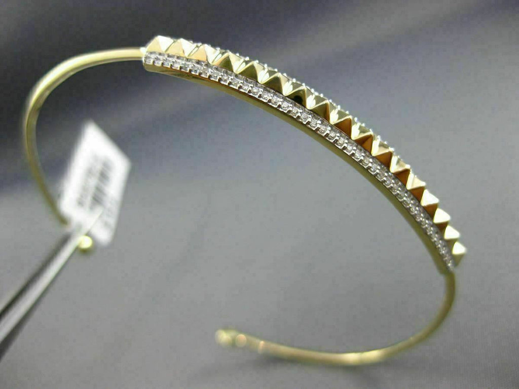 ESTATE LARGE 14KT YELLOW GOLD FUN BANGLE BRACELET. 3D PYRAMID SPIKE DESIGN. DIAMONDS ARE F/G COLOR, VSSI CLARITY .26 CARATS. MEASURES 5MM X 52MM X 62MM. FITS 6.50-7" INCH WRIST. WRITTEN APPRAISAL AVAILABLE. COMES IN A PRESENTABLE GIFT BOX.