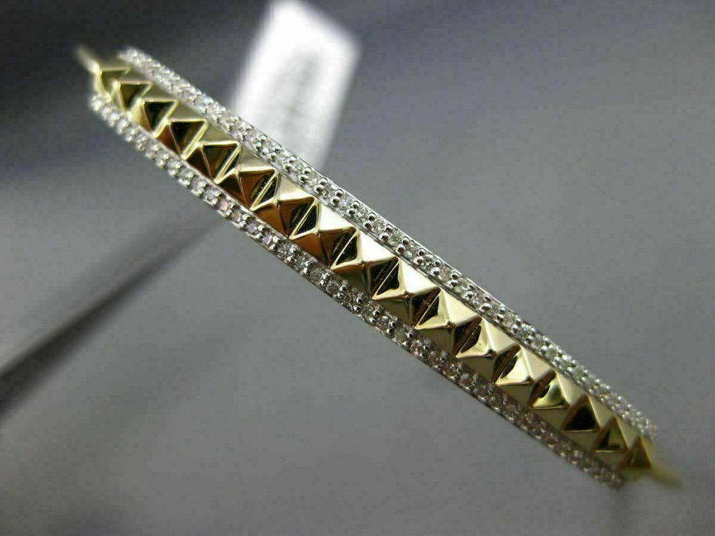 ESTATE LARGE .26CT DIAMOND 14KT YELLOW GOLD 3D PYRAMID SPIKE FUN BANGLE BRACELET