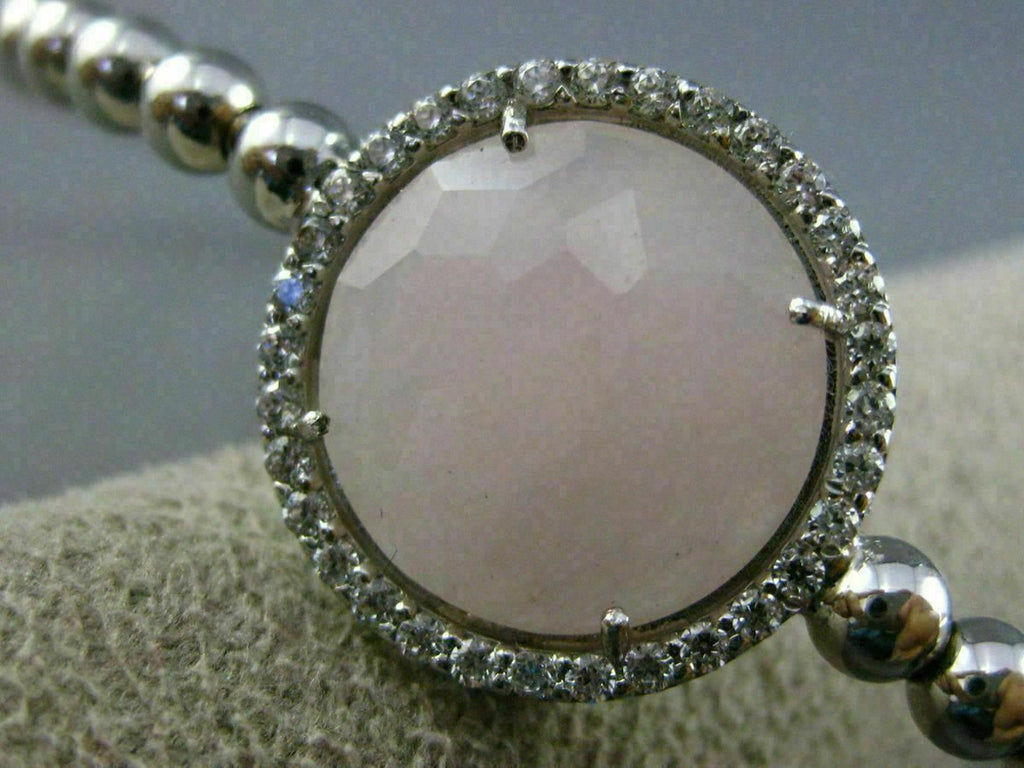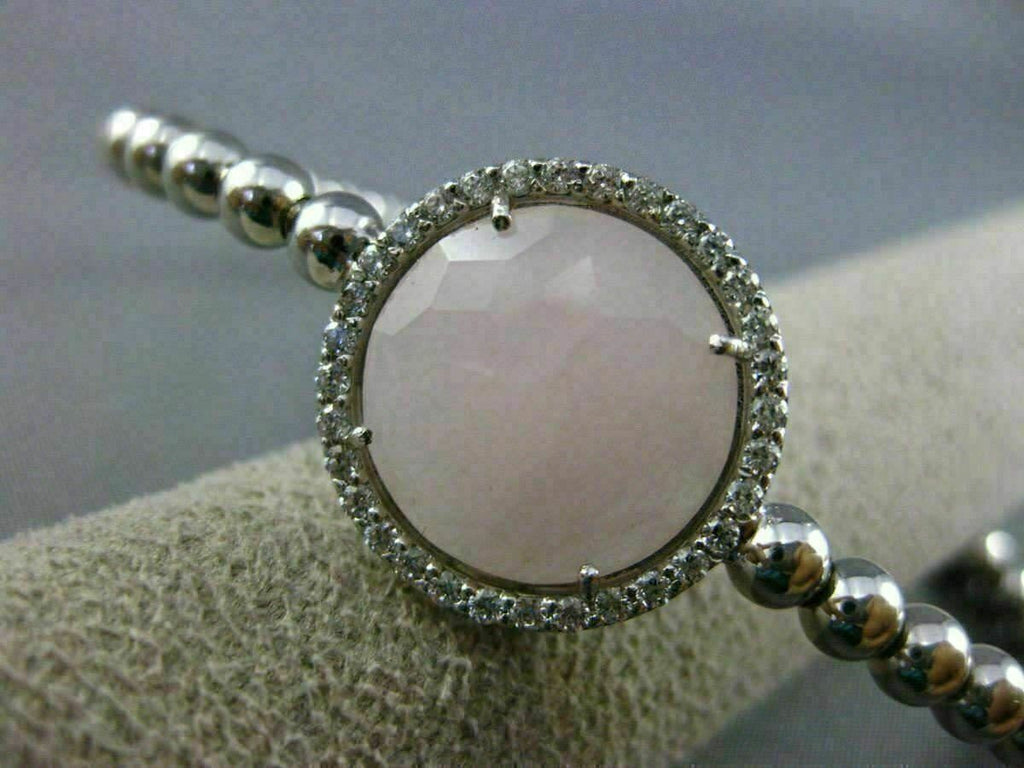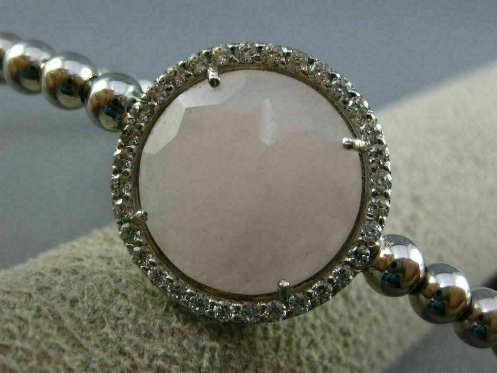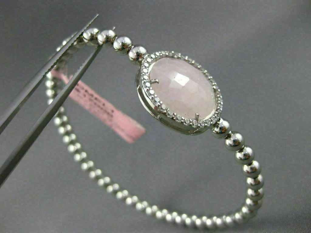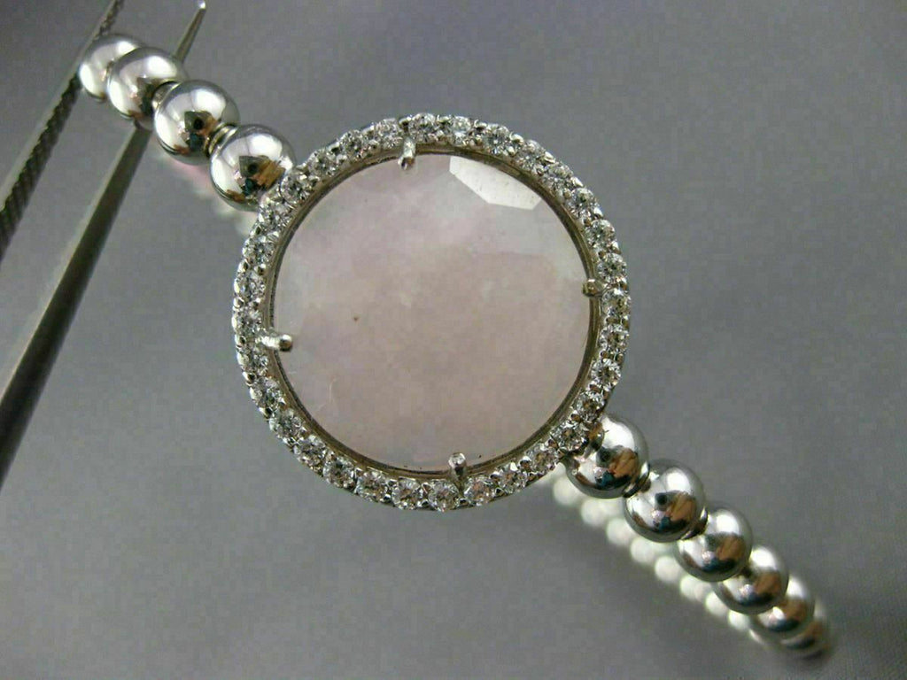 ESTATE LARGE 14KT WHITE GOLD BANGLE BRACELET. 3D CIRCULAR DESIGN. DIAMONDS ARE F/G COLOR, VSSI CLARITY .50 CARATS. FEATURES AAA EXTRA FACETED PINK QUARTZ. MEASURES 18mm X 56mm X 65mm. FITS 6" INCH WRIST. WRITTEN APPRAISAL AVAILABLE. COMES IN A PRESENTABLE GIFT BOX.