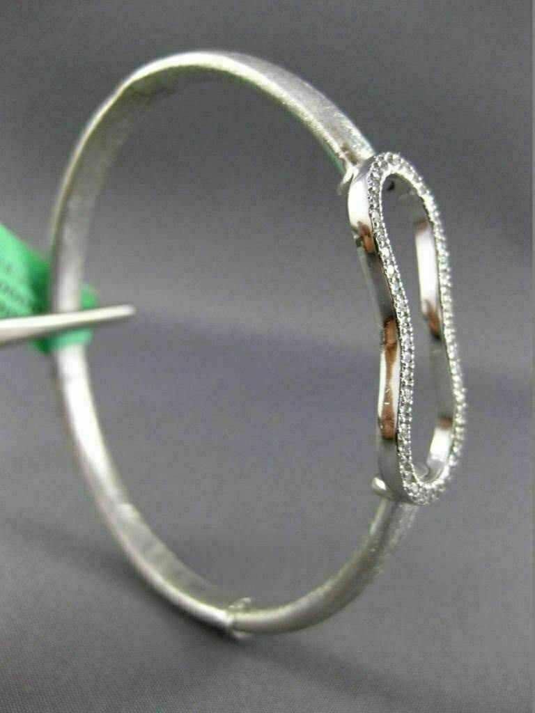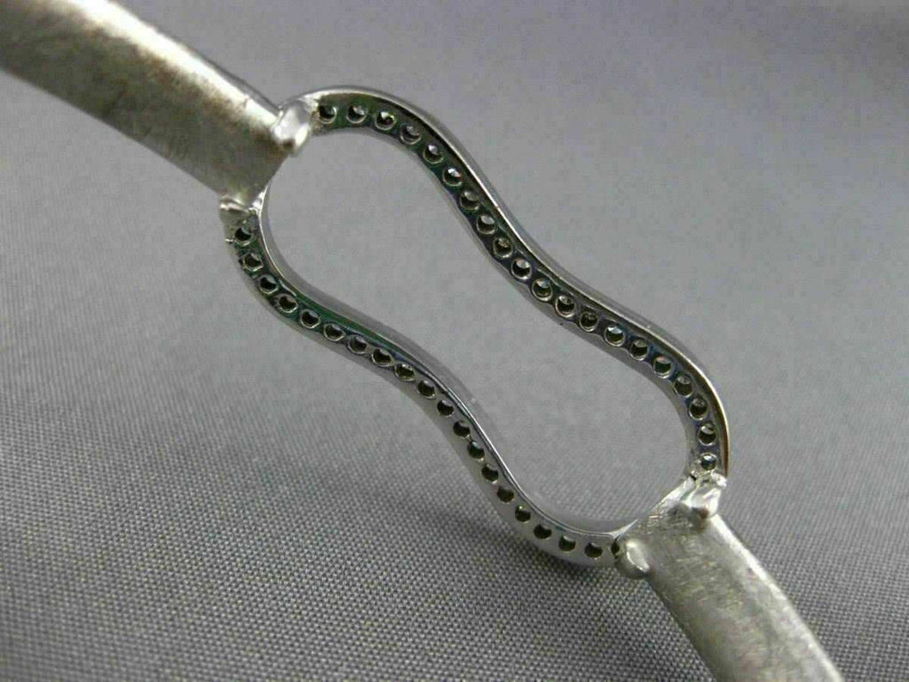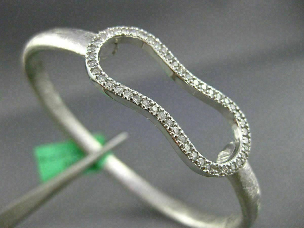ESTATE LARGE .75CT DIAMOND 18K WHITE GOLD MATTE & SHINY HUG LOVE BANGLE BRACELET
