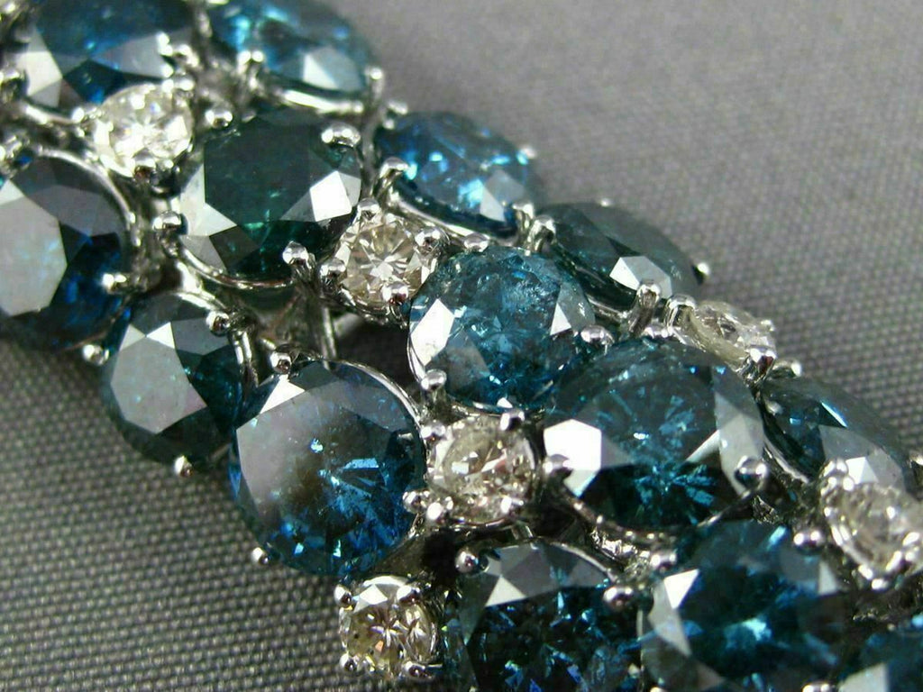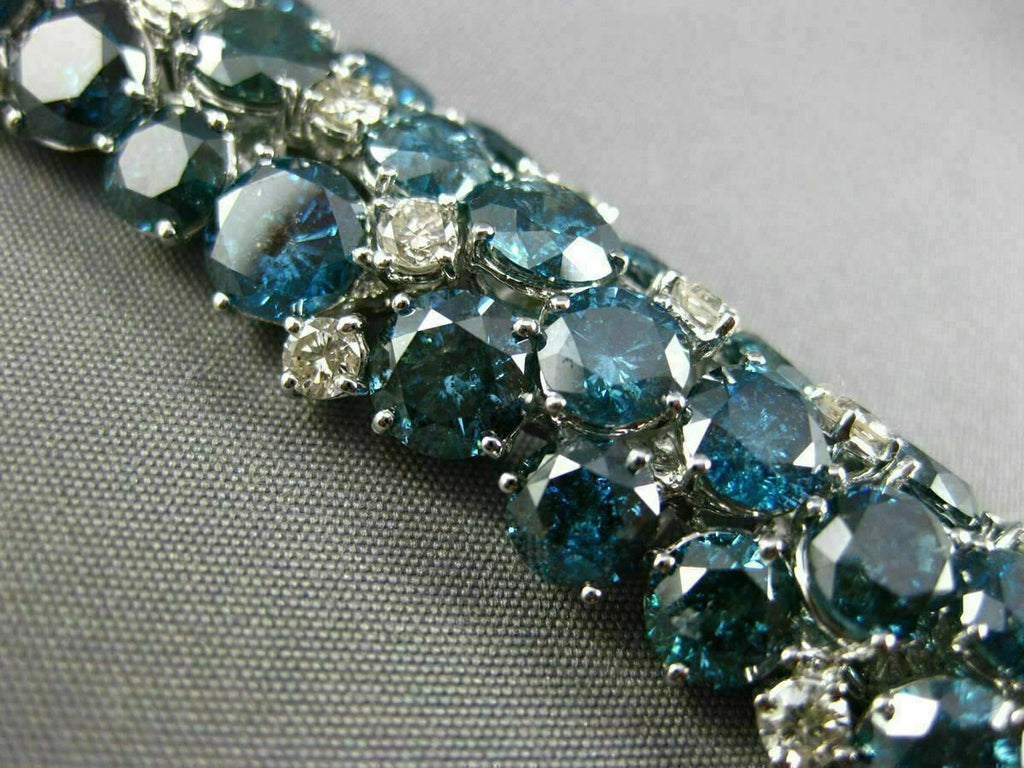 ESTATE MASSIVE 56.94CT WHITE & BLUE DIAMOND 18K WHITE GOLD 3D MULTI ROW BRACELET