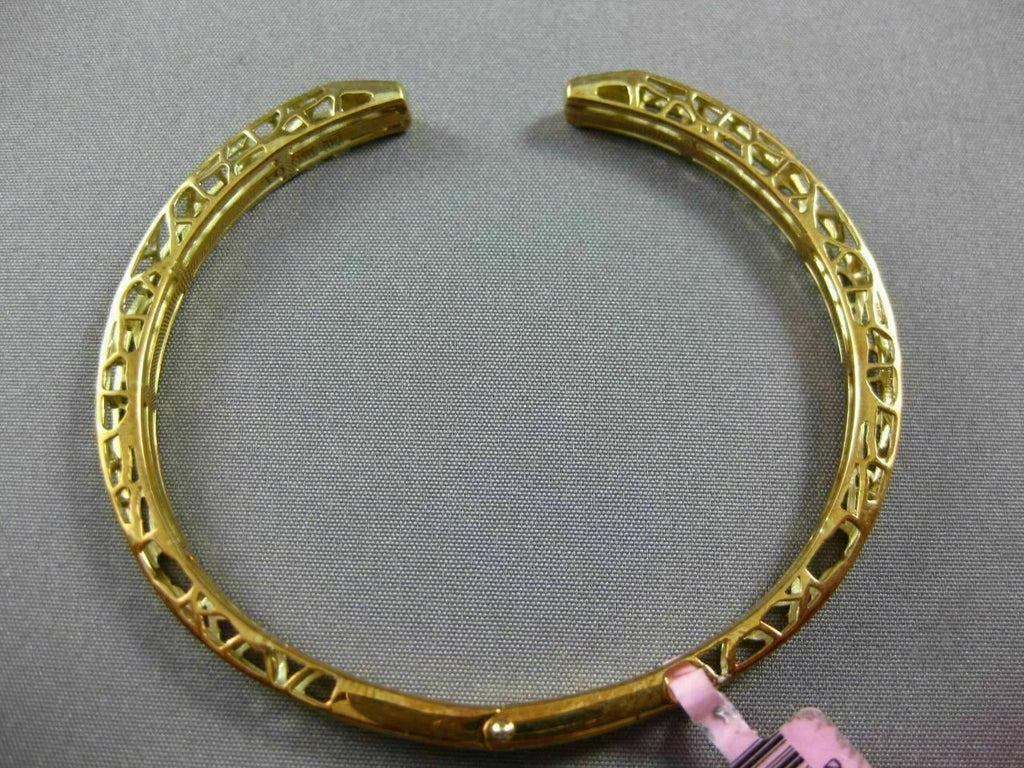ESTATE SMALL 14KT YELLOW GOLD BANGLE BRACELET. 3D OPEN FILIGREE PAVE DESIGN. DIAMOND ARE F/G COLOR, VSSI CLARITY .17 CARATS. MEASURES 4mm X 52mm x 49mm WIDE. LENGTH IS 6" INCHES. WRITTEN APPRAISAL AVAILABLE. COMES IN A PRESENTABLE GIFT BOX.