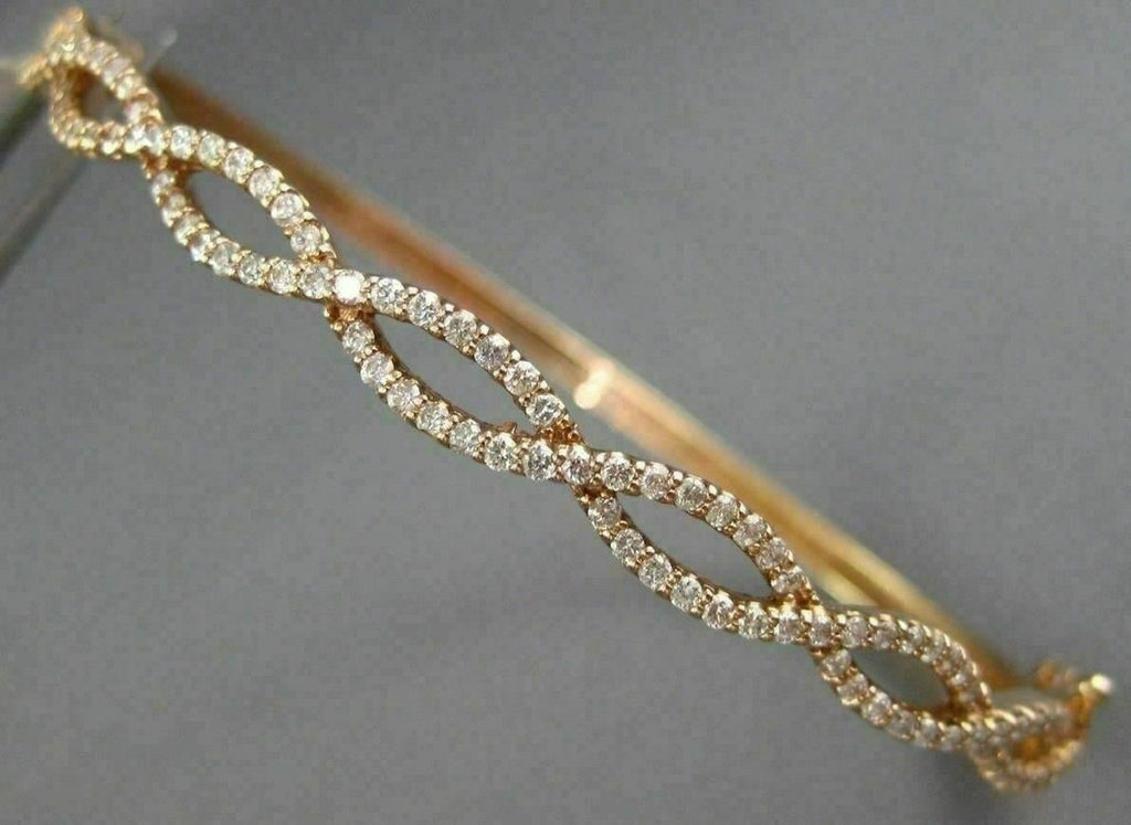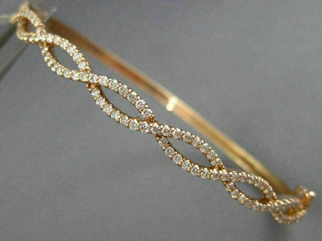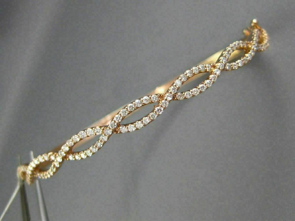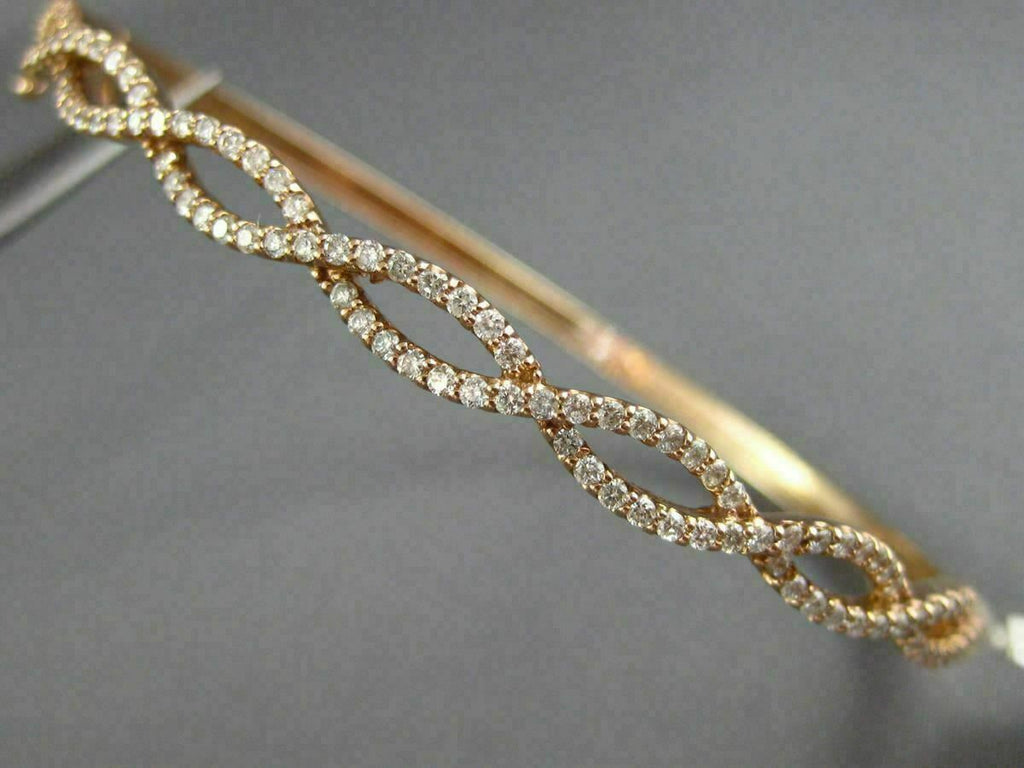 ESTATE WIDE 14KT ROSE GOLD BANGLE BRACELET. 3D INFINITY SEMI ETERNITY DESIGN. DIAMONDS ARE F/G COLOR, VSSI CLARITY 1.02 CARATS. MEASURES 5mm X 55mm X 67mm. FITS UP TO 7" INCH WRIST. WRITTEN APPRAISAL AVAILABLE. COMES IN A PRESENTABLE GIFT BOX.
