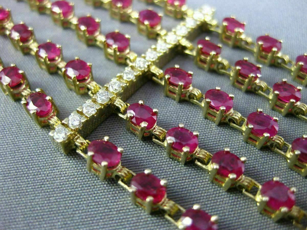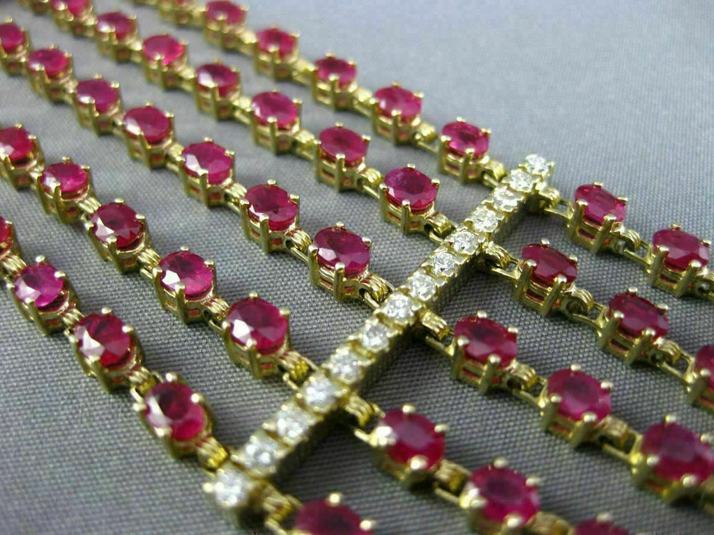 ESTATE WIDE 26.91CT DIAMOND & RUBY 14KT YELLOW GOLD 3D MULTI ROW TENNIS BRACELET