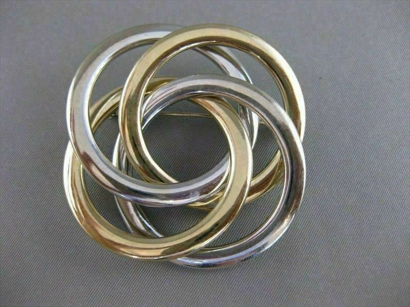 ANTIQUE LARGE 14K WHITE YLW GOLD CLETIC KNOT PIN BROOCH #20843