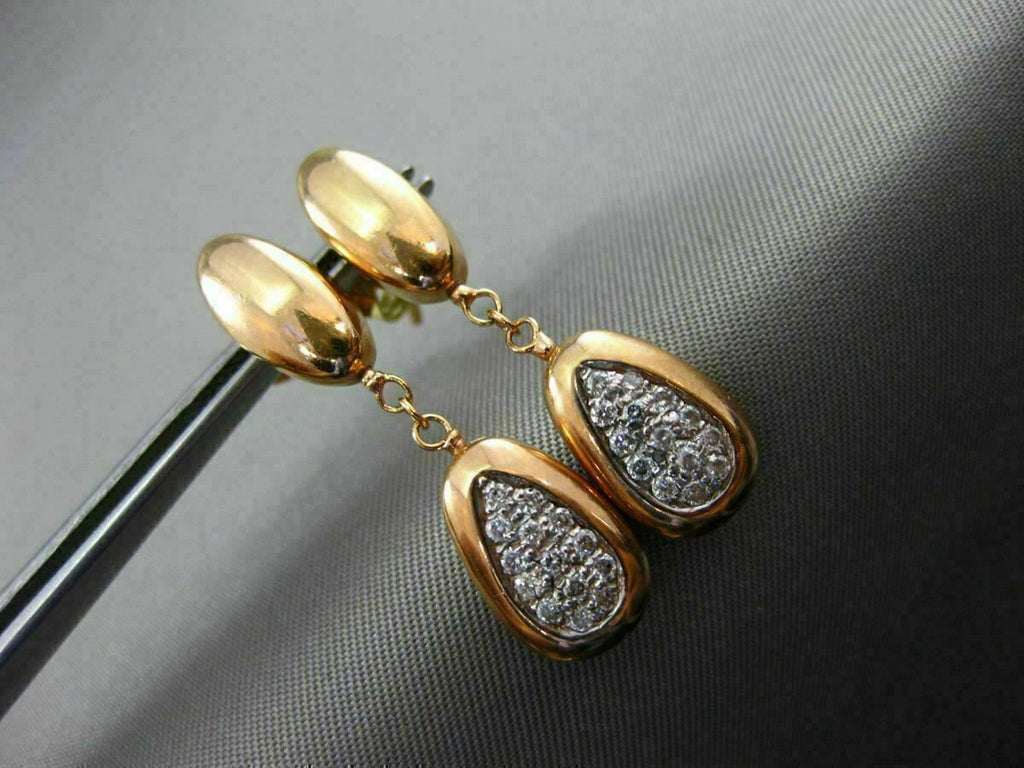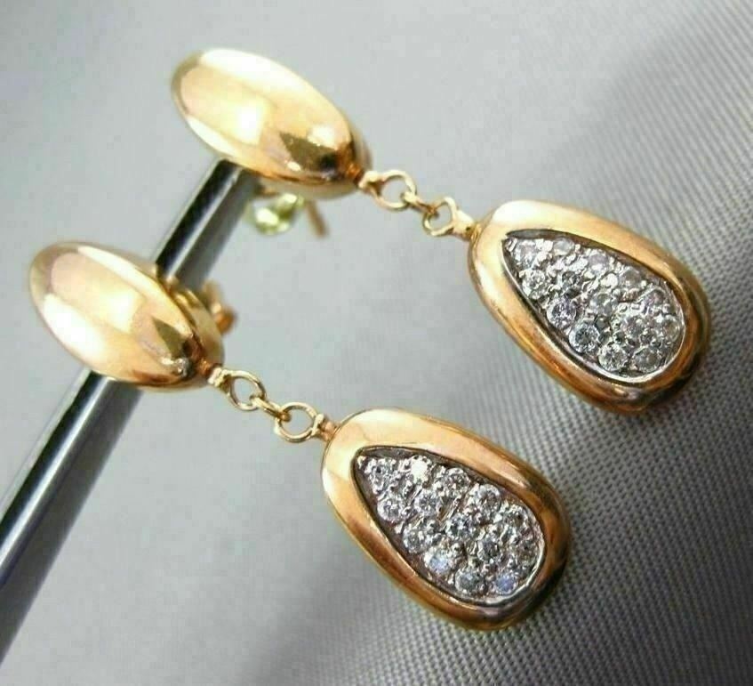 ESTATE 14K WHITE AND ROSE GOLD HANGING DROP EARRINGS. 3D PAVE PEAR SHAPE DESIGN. DIAMONDS ARE F/G COLOR, VSSI CLARITY .28 CARATS. MEASURES 30MM x 7MM WIDE. WRITTEN APPRAISAL AVAILABLE. COMES IN A PRESENTABLE GIFT BOX.