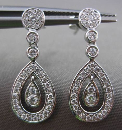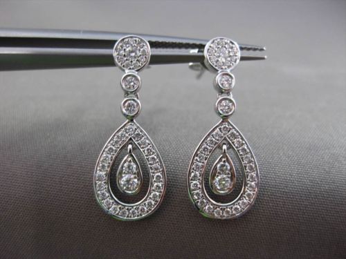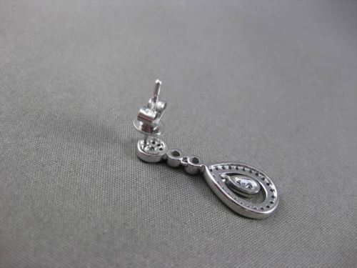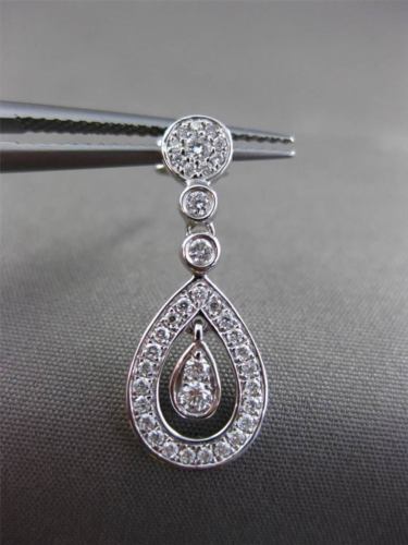 ESTATE .46CTW DIAMOND 14KT WHITE GOLD FLOATING TEAR DROP PEAR HANGING EARRINGS