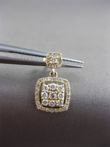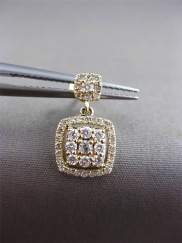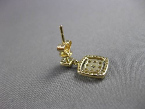 ESTATE .62CT ROUND DIAMOND 14K YELLOW GOLD SQUARE HALO FLOATING HANGING EARRINGS