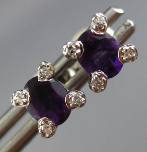 ESTATE 14KT WHITE GOLD STUD EARRINGS. 3D CLASSIC OVAL ETOILE DESIGN. DIAMONDS ARE F/G COLOR, VSSI CLARITY .04 CARATS. AAA EXTRA FACET AMETHYST ARE .60 CARATS. MEASURES 6mm WIDE. WRITTEN APPRAISAL AVAILABLE. COMES IN A PRESENTABLE GIFT BOX.