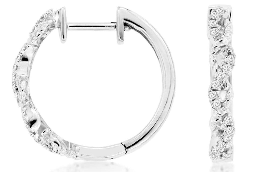 0.15CT DIAMOND 14KT WHITE GOLD 3D CLASSIC INFINITY LOVE HUGGIE EARRINGS
