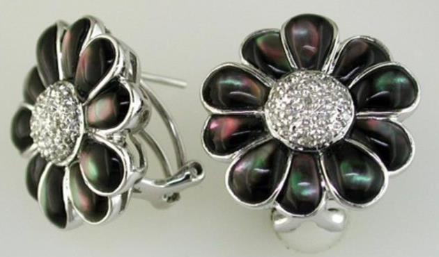 14KT WHITE GOLD CLIP ONEARRINGS. 3D FLOWER DESIGN. DIAMONDS ARE F/G COLOR, VSSI CLARITY 0.22 CARATS. FEATURES AAA MOTHER OF PEARLS.WRITTEN APPRAISAL AVAILABLE. COMES IN A PRESENTABLE GIFT BOX.