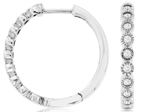 0.27CT DIAMOND 14KT WHITE GOLD CLASSIC FILIGREE MILGRAIN HUGGIE HANGING EARRINGS