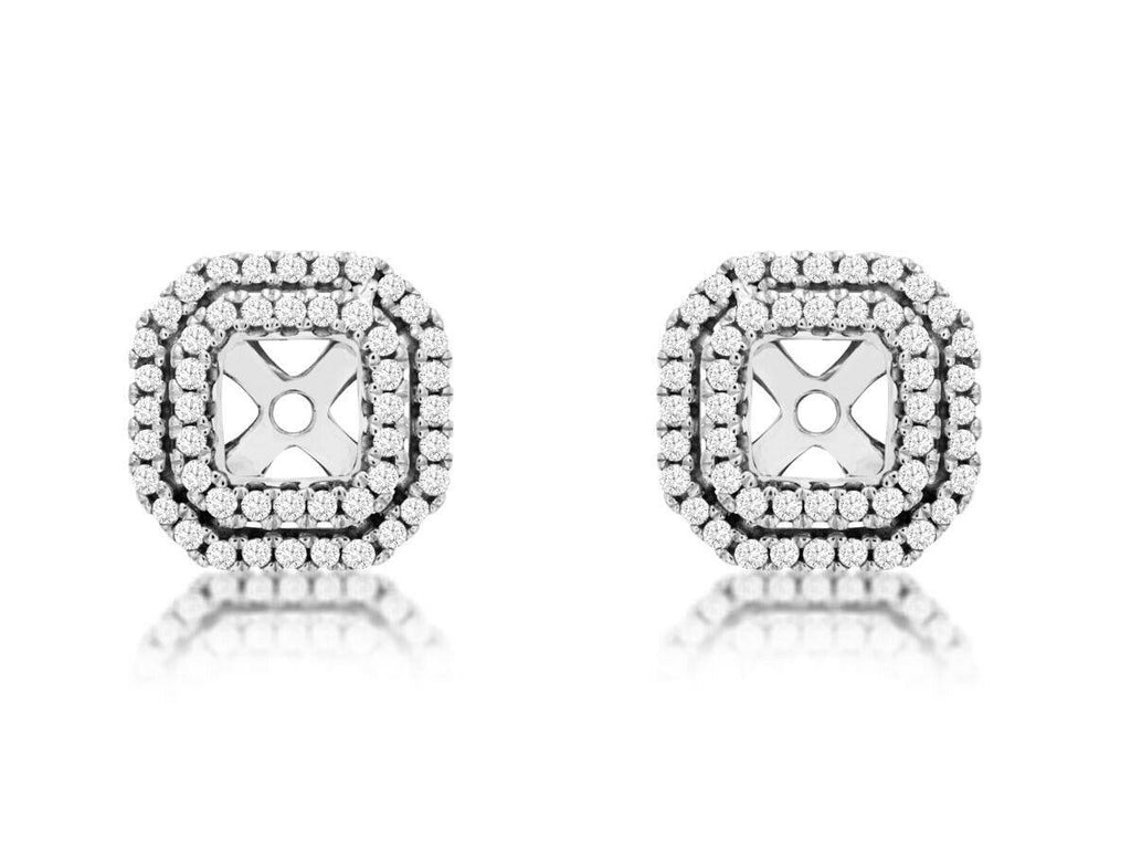 0.30CT DIAMOND 14KT WHITE GOLD CLASSIC DOUBLE HALO ROUND SQUARE JACKET EARRINGS