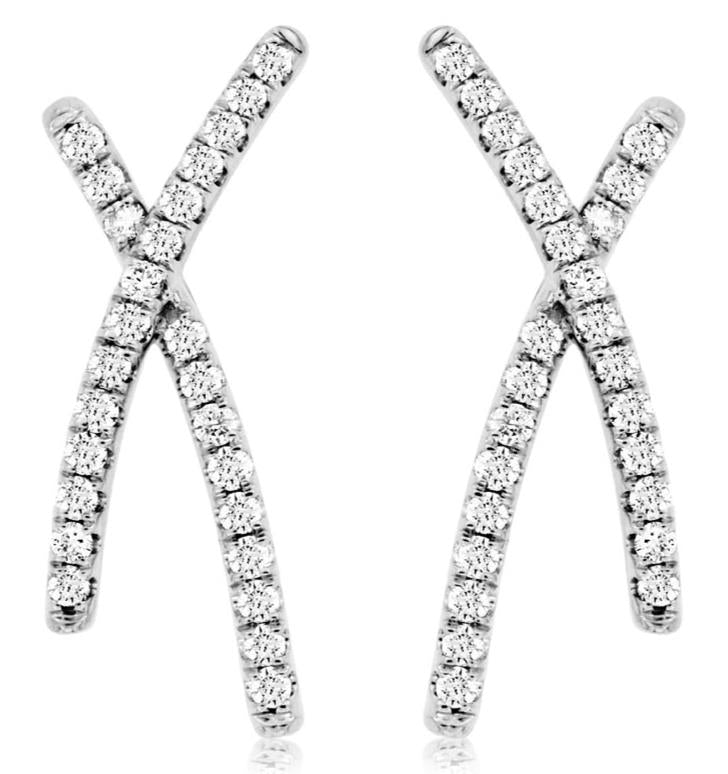 0.50CT DIAMOND 14KT WHITE GOLD 3D CLASSIC ROUND X LOVE HANGING EARRINGS