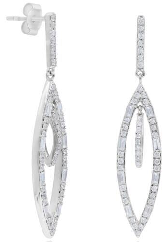 .55CT DIAMONDS 14KT WHITE GOLD ROUND & BAGUTTE MARQUISE SHAPE HANGING EARRINGS