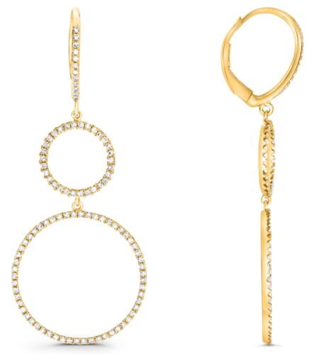 .60CT DIAMOND 14KT YELLOW GOLD DOUBLE CIRCLE OF LIFE LEVERBACK HANGING EARRINGS