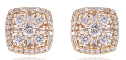 14KT WHITE GOLD STUD EARRINGS. 3D CLASSIC FLOWER SQUARE DESIGN. DIAMONDS ARE F/G COLOR, VSSI CLARITY. ROUND DIAMONDS ARE .51 CARATS. BAGUETTE DIAMONDS ARE .10 CARATS. WRITTEN APPRAISAL AVAILABLE. COMES IN A PRESENTABLE GIFT BOX.