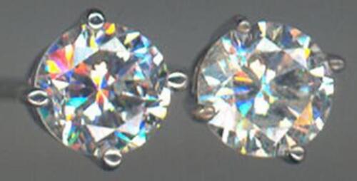 14KT WHITE GOLD STUD EARRINGS. 3D CLASSIC SOLITAIRE FOUR PRONG DESIGN. ROUND DIAMONDS ARE F/G COLOR, VSSI CLARITY .65 CARATS.