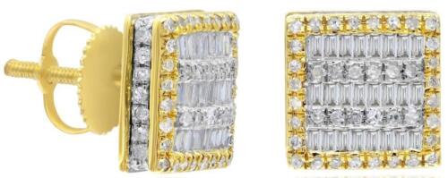 .66CT DIAMOND 14K YELLOW GOLD ROUND & BAGUETTE CLUSTER SQUARE SCREWBACK EARRINGS