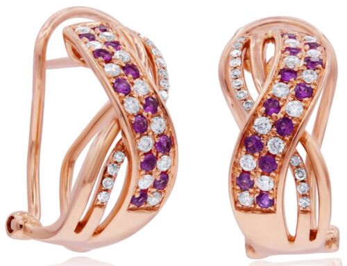 14KT ROSE GOLD LOVE HANGING EARRINGS. 3D MULTI ROW CRISS CROSS INFINITY DESIGN. ROUND DIAMONDS ARE F/G COLOR, VSSI CLARITY .40 CARATS. AAA ROUND PINK SAPPHIRES ARE .34 CARATS. WRITTEN APPRAISAL AVAILABLE. COMES IN A PRESENTABLE GIFT BOX.