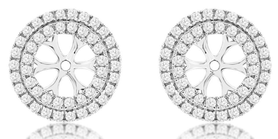 0.75CT DIAMOND 14KT WHITE GOLD 3D CLASSIC DOUBLE ROW ROUND HALO JACKET EARRINGS