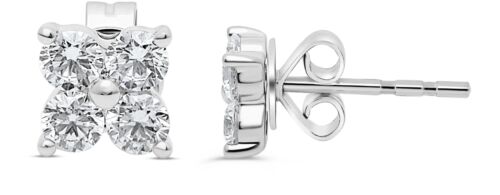.75CT DIAMOND 14KT WHITE GOLD ROUND CLASSIC 4 STONE FLOWER SQUARE STUD EARRINGS