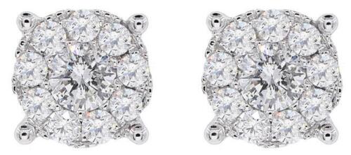 .80CT DIAMOND 14KT WHITE GOLD ROUND SOLITAIRE HALO FILIGREE FLORAL STUD EARRINGS