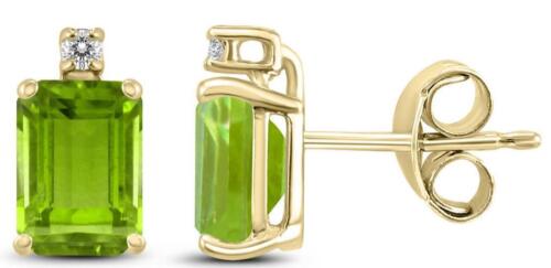 .84CT DIAMOND & AAA PERIDOT 14K YELLOW GOLD 3D EMERALD CUT & ROUND STUD EARRINGS