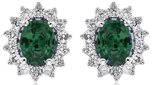 .90CT DIAMOND & AAA EMERALD 14KT WHITE GOLD 3D OVAL & ROUND FLOWER STUD EARRINGS