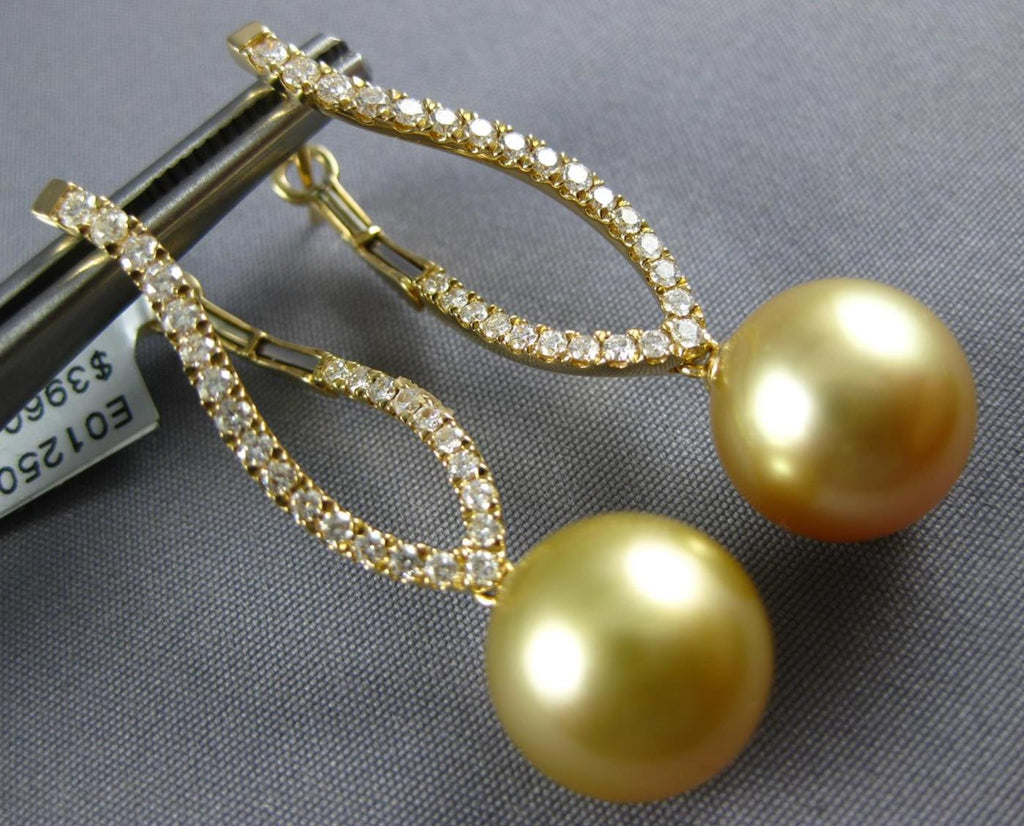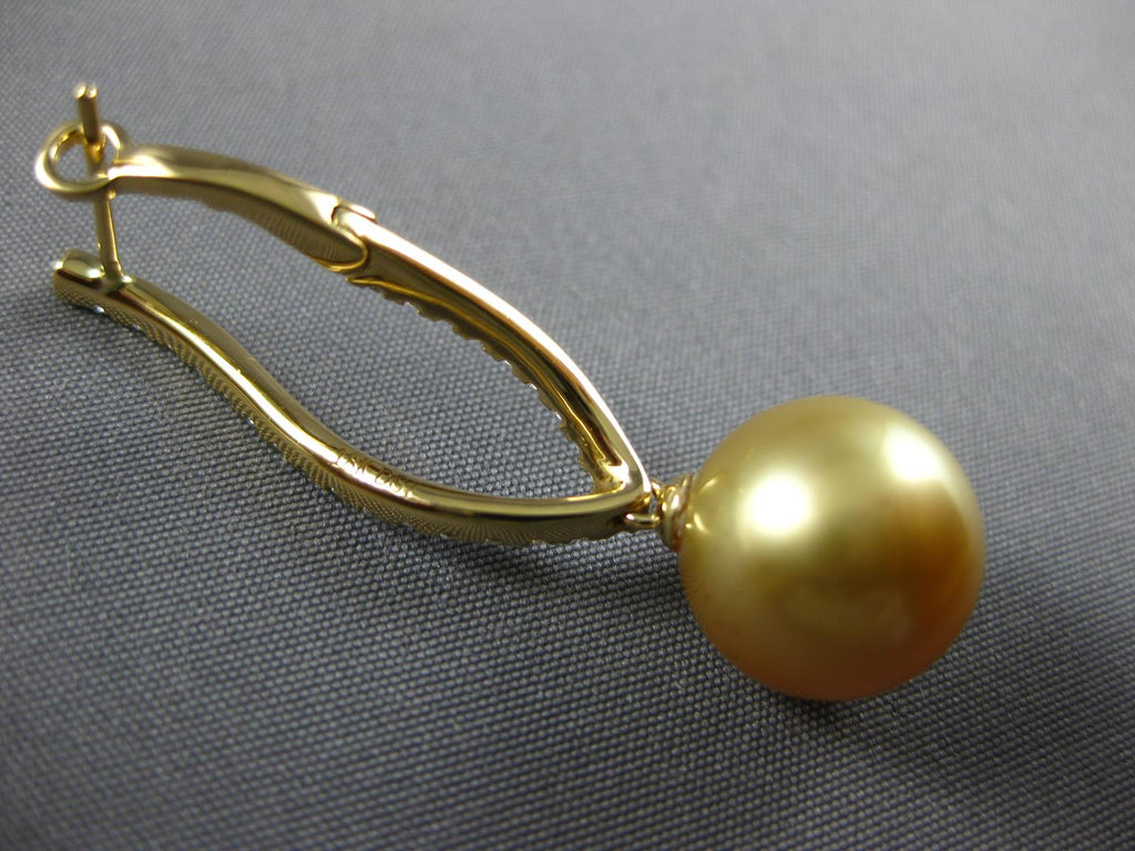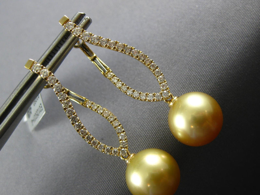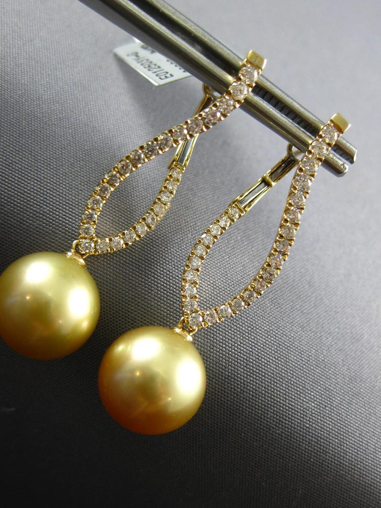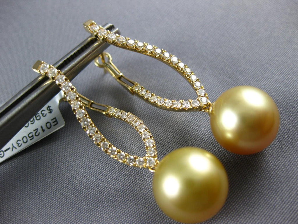 18KT YELLOW GOLD HANGING EARRINGS. 3D INFINITY DESIGN. DIAMONDS ARE F/G COLOR, VS CLARITY .70 CARATS. FEATURES AAA GOLDEN SOUTH SEA PEARL. MEASURES 35.5mm X 11.5mm. WRITTEN APPRAISAL AVAILABLE. COMES IN A PRESENTABLE GIFT BOX.