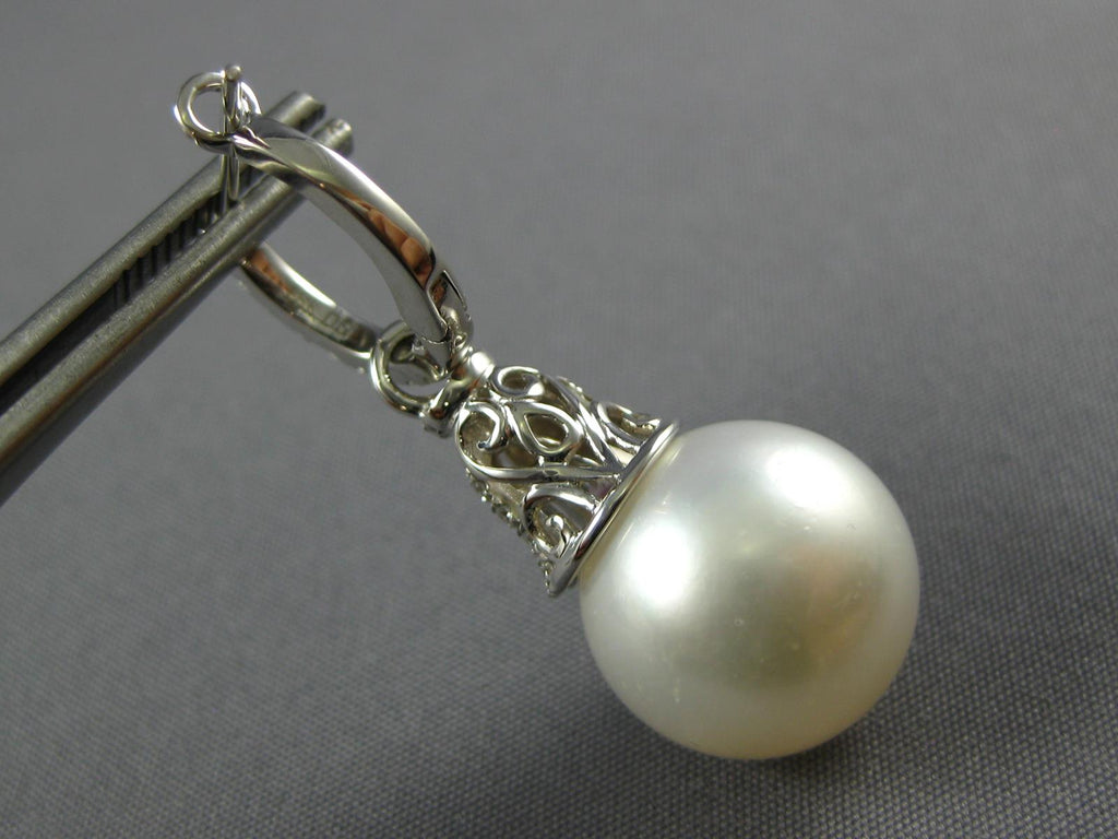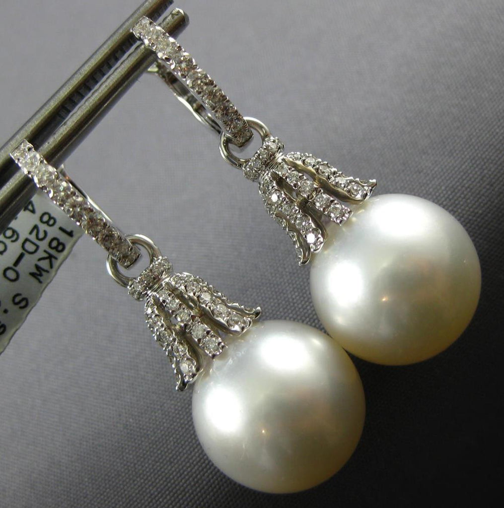 .60CT DIAMOND & SOUTH SEA PEARL 18K WHITE GOLD 3D CLASSIC CROWN HANGING EARRINGS