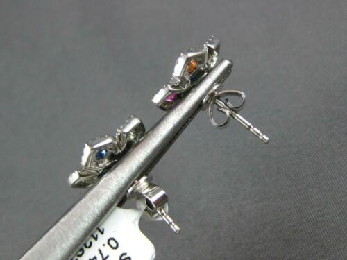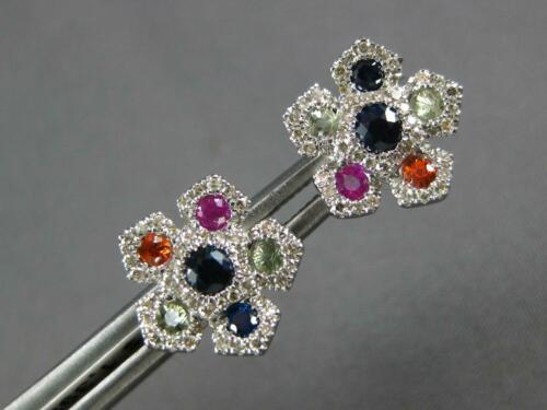1.01CT DIAMOND & AAA MULTI COLOR SAPPHIRE 14K WHITE GOLD 3D FLOWER STUD EARRINGS