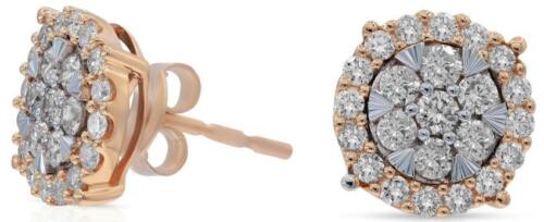 1.02CT DIAMOND 14KT ROSE GOLD 3D ROUND CLASSIC CLUSTER FLOWER HALO STUD EARRINGS