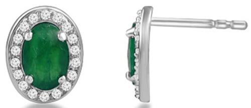 1.02CT DIAMOND & AAA EMERALD 14KT WHITE GOLD OVAL & ROUND CLASSIC STUD EARRINGS