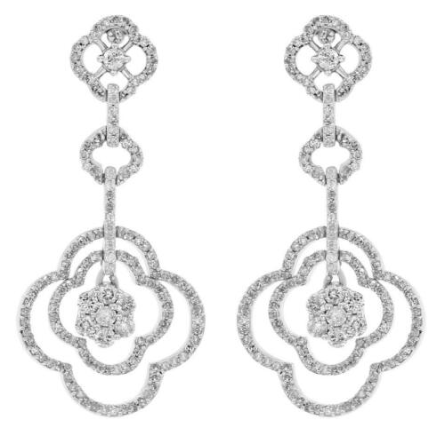 1.03CT DIAMOND 14K WHITE GOLD CLUSTER 4 LEAF CLOVER FLOWER LOVE HANGING EARRINGS