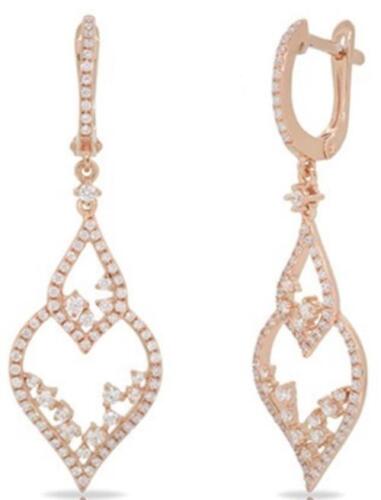 1.04CT DIAMOND 14K ROSE GOLD 3D CLUSTER HEART SHAPE TEAR DROP LEVERBACK EARRINGS