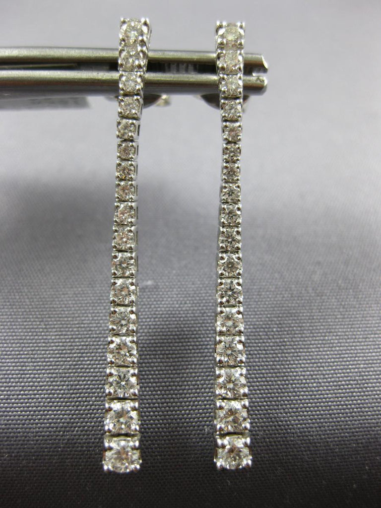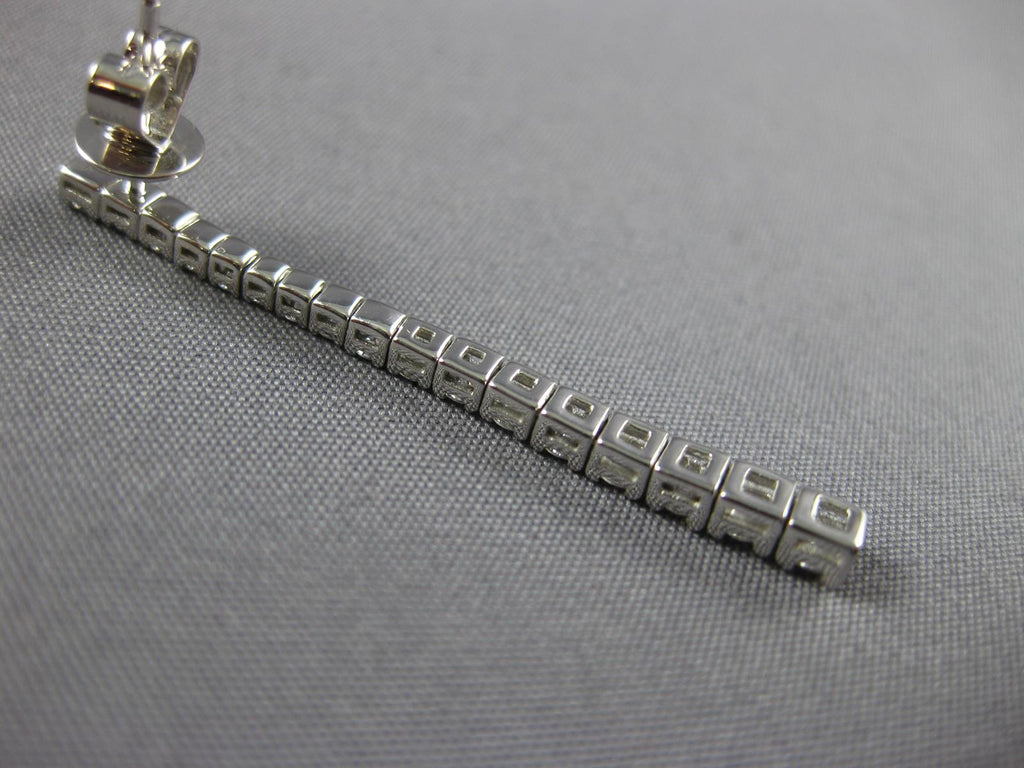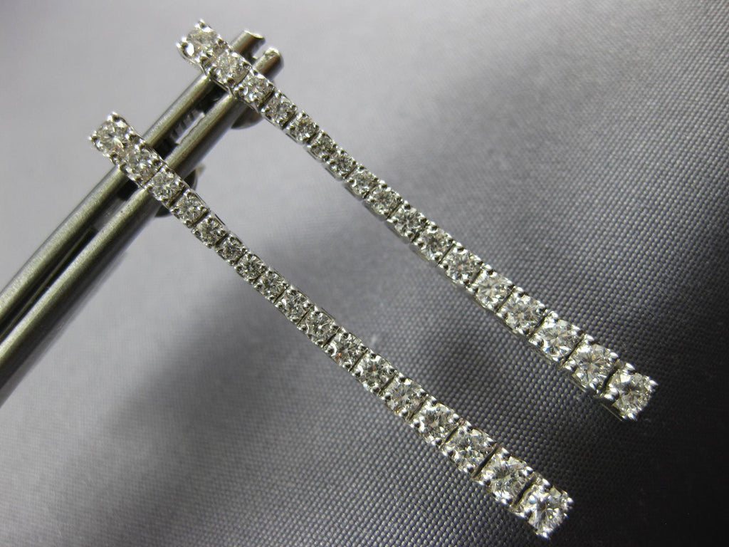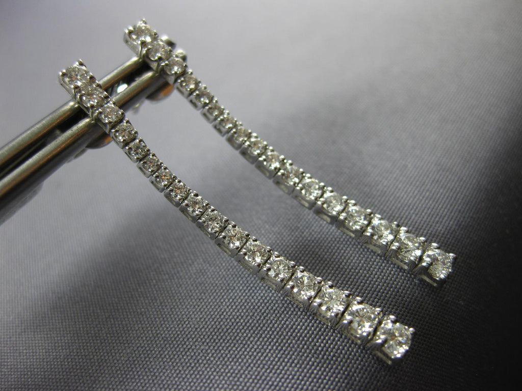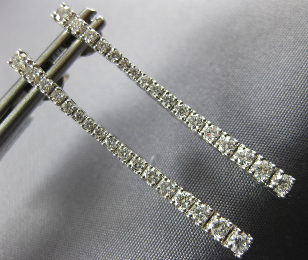 18KT WHITE GOLD HANGING EARRINGS. 3D CLASSIC JOURNEY BAR FLEXIBLE DESIGN. DIAMONDS ARE F/G COLOR, VS CLARITY 1.05 CARATS. MEASURES 37mm X 2mm WIDE. WRITTEN APPRAISAL AVAILABLE. COMES IN A PRESENTABLE GIFT BOX.