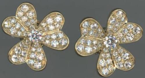 18KT YELLOW GOLD STUD EARRINGS. 3D MULTI HEART FLOWER DESIGN. ROUND DIAMONDS ARE F/G COLOR, VSSI CLARITY 1.06 CARATS. WRITTEN APPRAISAL AVAILABLE. COMES IN A PRESENTABLE GIFT BOX.