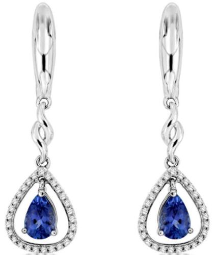 1.0CT DIAMOND & AAA TANZANITE 14K WHITE GOLD PEAR SHAPE & ROUND HANGING EARRINGS
